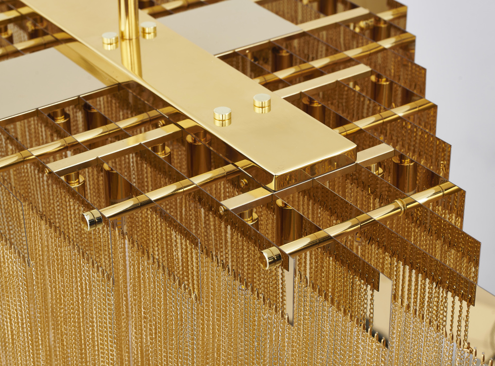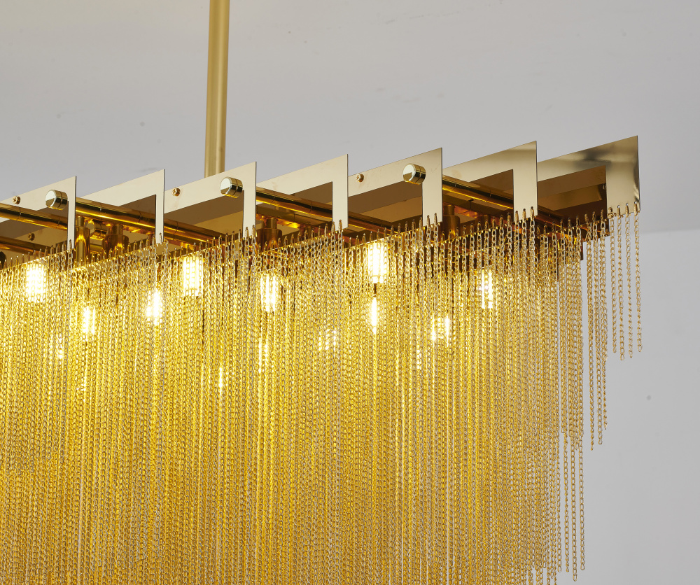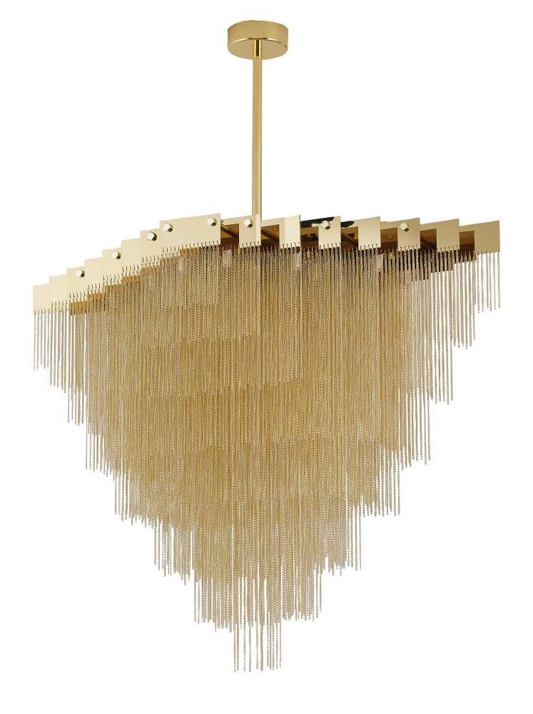 20-Light Gold prism chandelier with hanging aluminum chains