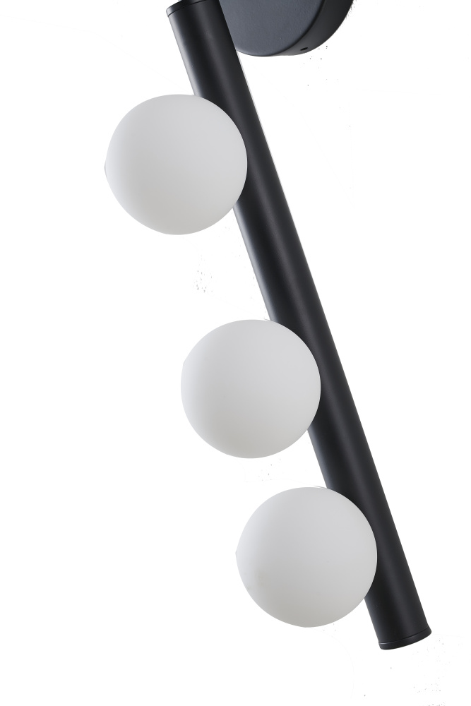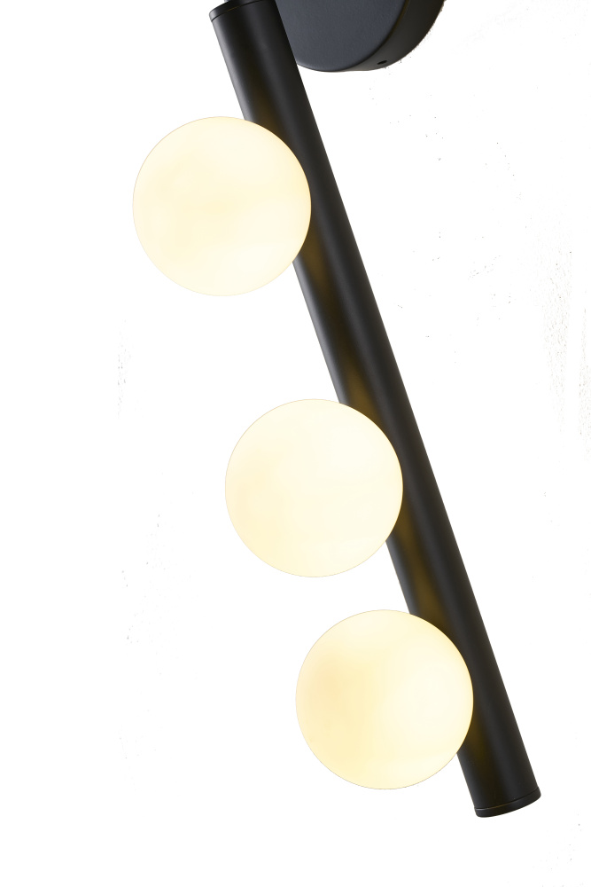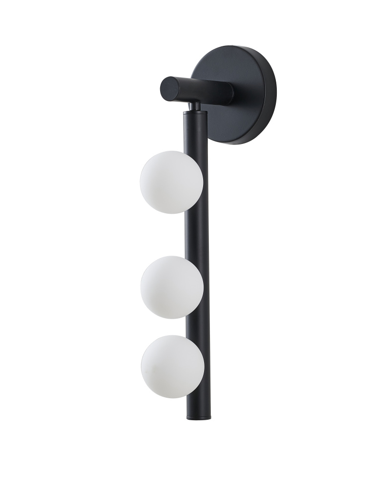 3-Light Matte Black Metal Wall Sconce With White Glass Shades by Bethel International Canada