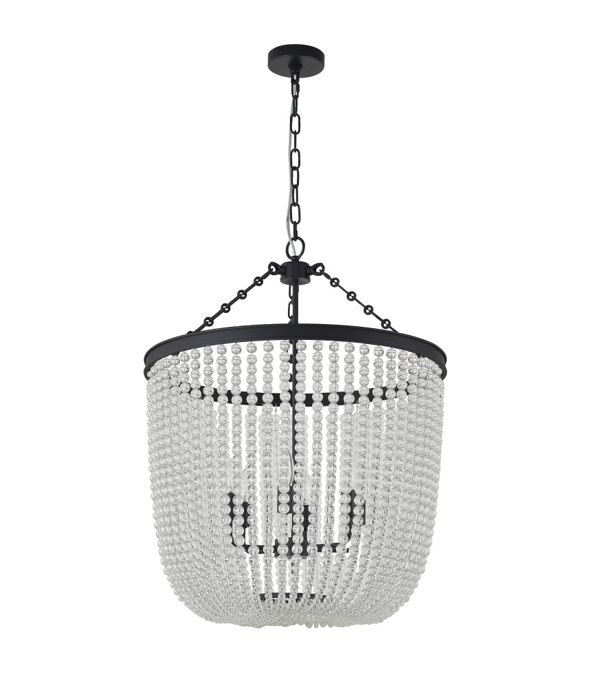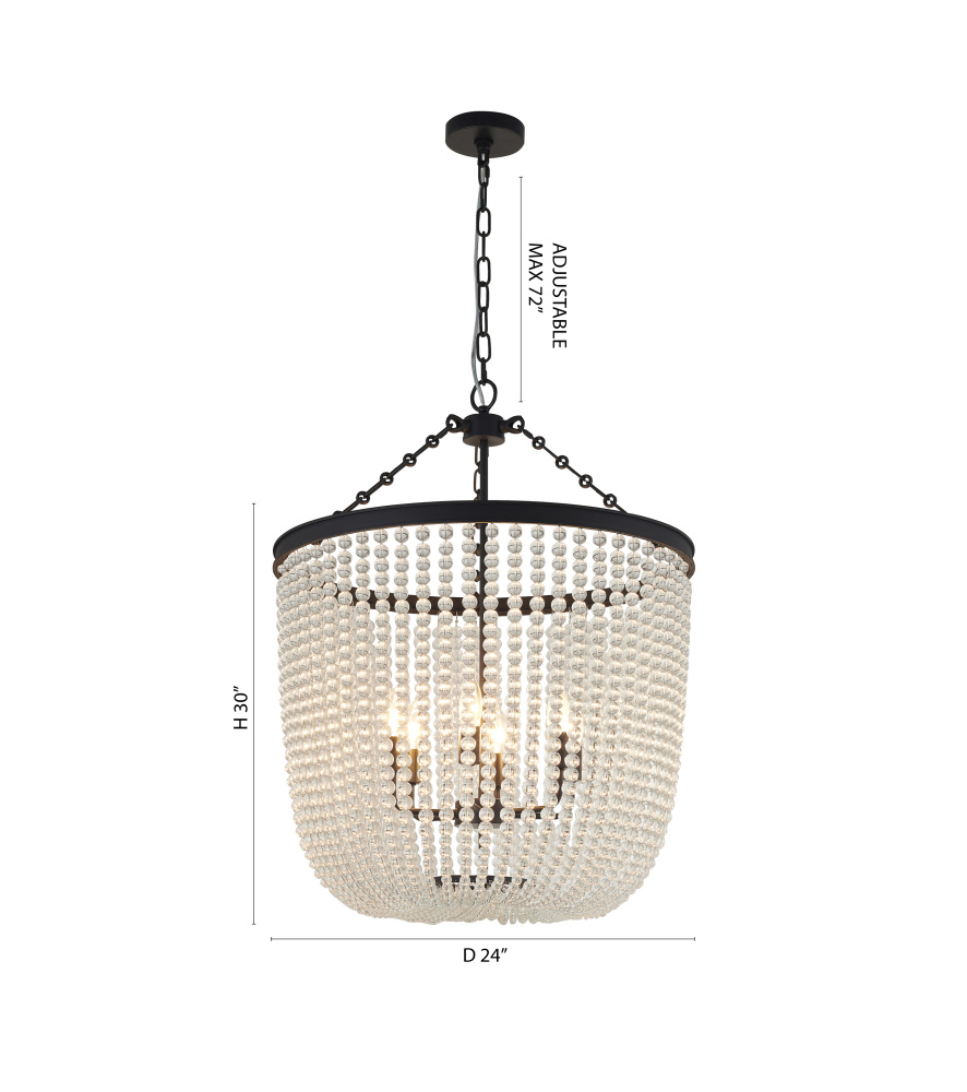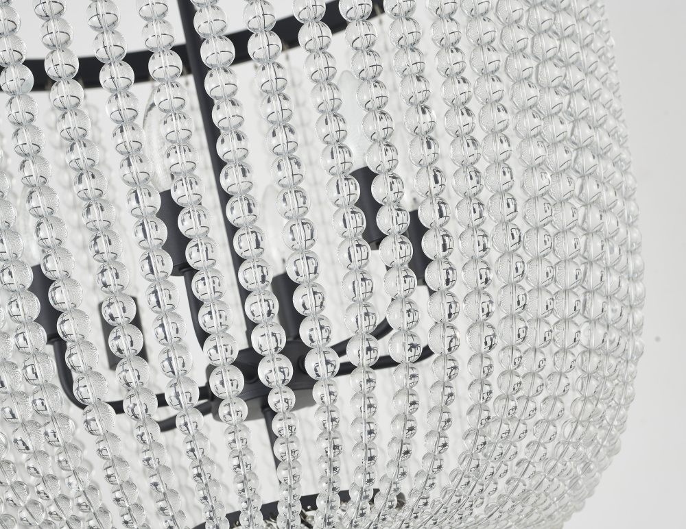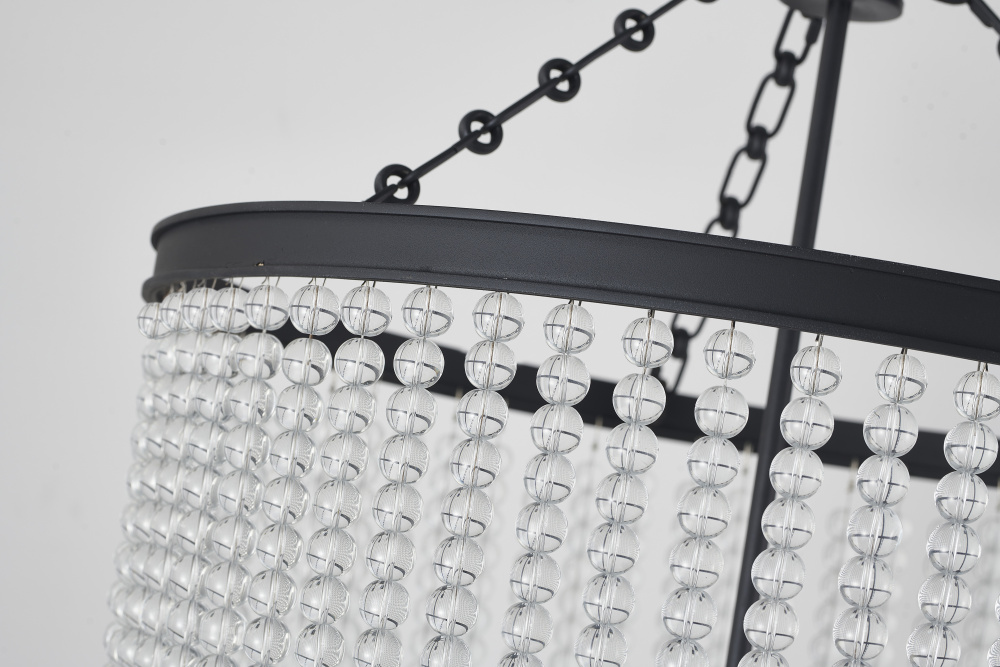 This coastal chandelier is stunning with a satin black metal frame decked with strands of faceted clear beaded hanging glass, and the glass further highlight the uniqueness of this chandelier. When you hang this modern chandelier in your home, you will easily be surprised by the magnificent light reflected by the glass accents. If you are also looking for a light source for your living room, entryway, or dinning room, this chandelier can easily fit into your modern home decor. The adjustable chain link makes this fixture suitable for most ceiling heights