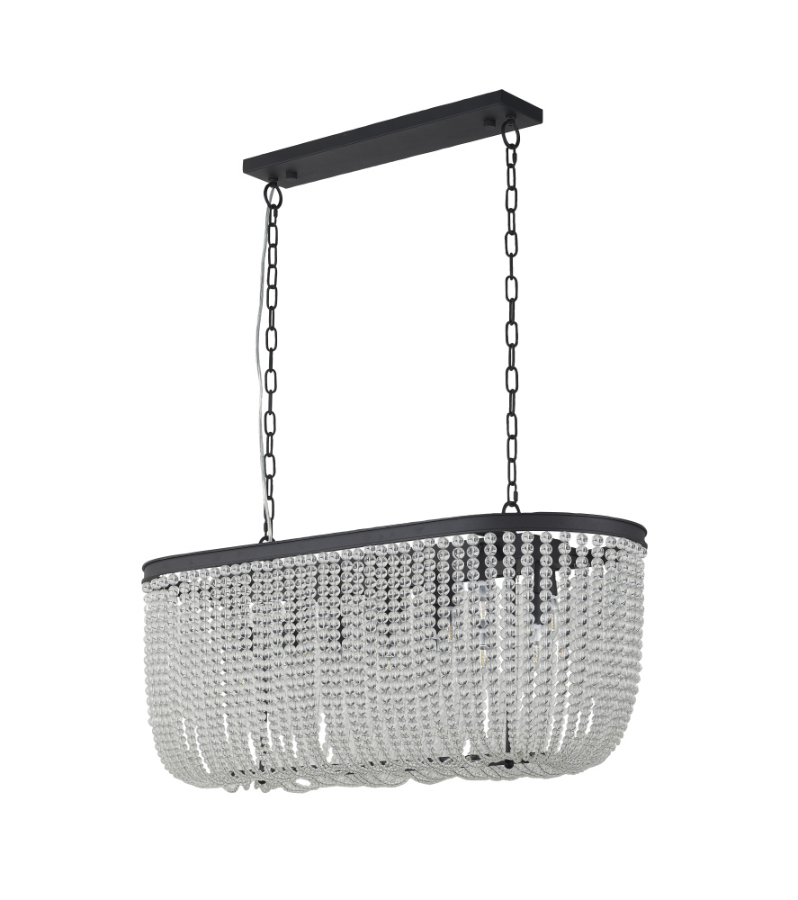 6-Light Satin Black Oval Chandelier With Clear Beaded hanging Crystals by Bethel International Canada