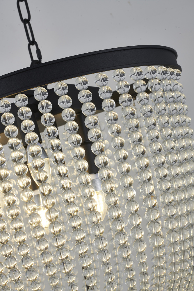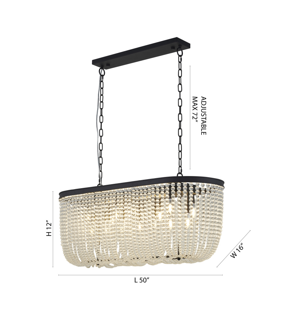 This coastal chandelier is stunning with a satin black metal frame decked with strands of faceted clear beaded hanging crystals, and the crystals further highlight the uniqueness of this chandelier. When you hang this modern chandelier in your home, you will easily be surprised by the magnificent light reflected by the crystal accents. If you are also looking for a light source for your living room, entryway, or dinning room, this chandelier can easily fit into your modern home decor. The adjustable chain link makes this fixture suitable for most ceiling heights