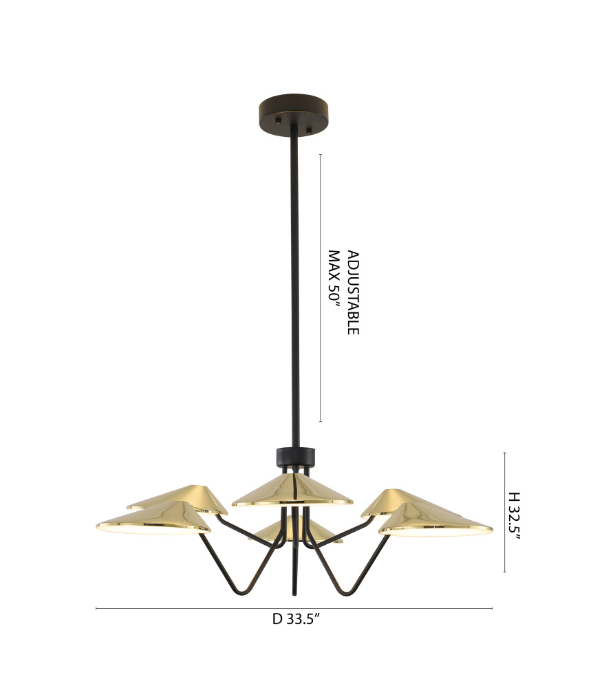 This stunning black and shiny brass iron transitional LED chandelier features white acrylic shades, adding a touch of sophistication and elegance to any room. Crafted from high-quality iron and acrylic, this fixture is built to last and provides a sturdy base for its beautiful design. The chandelier comes with LED bulbs included, providing a bright and energy-efficient lighting solution. Note that the chandelier is non-dimmabl. The rod length measures 2x16"+12"+6", providing ample flexibility to adjust the chandelier to your desired height and placement. With its modern design and versatile black and shiny brass finish, this chandelier is perfect for living room, dinning room, or foyer.