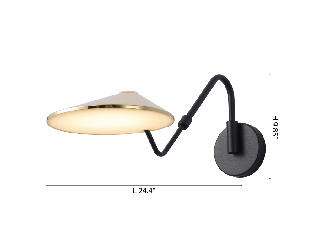 This sleek and transitional black and shiny brass iron LED wall sconce features a white acrylic diffuser, adding a touch of sophistication and elegance to any room. Crafted from high-quality iron and acrylic, this fixture is built to last and provides a sturdy base for its beautiful design. The sconce comes with an LED bulb included, providing a bright and energy-efficient lighting solution. Note that the sconce is non-dimmable. Simply mount it to your wall and enjoy the warm and inviting glow of the LED light. With its modern design and versatile black and shiny brass finish, this sconce is perfect for bedroom, living room, bathroom, or hallway.