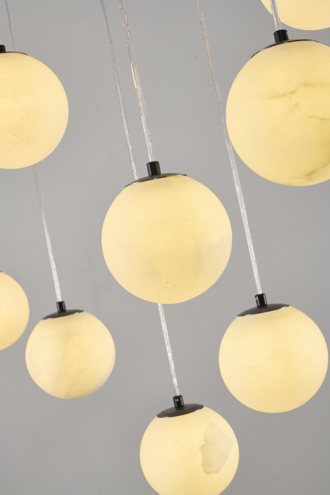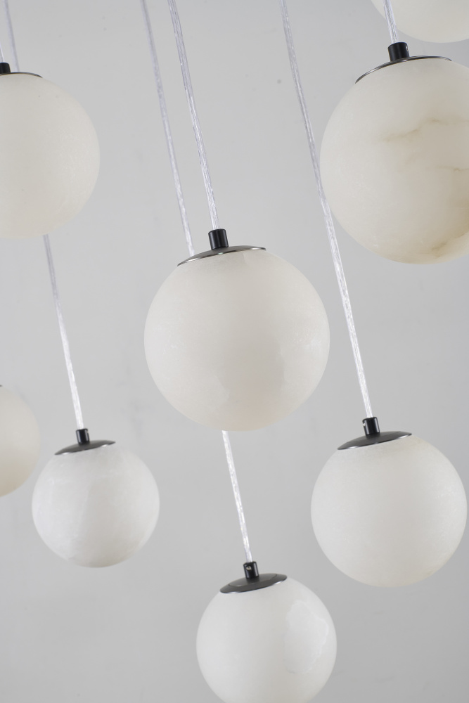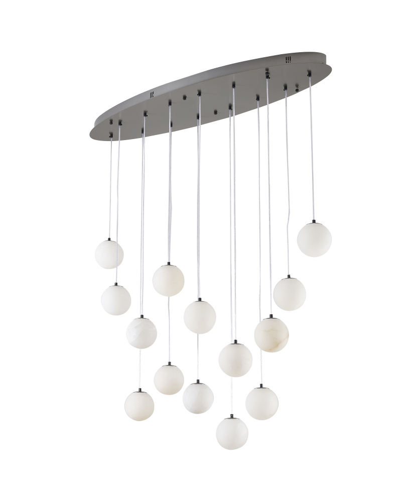 14-Light Black Stainless Steel Chandelier With Alabaster Pendants