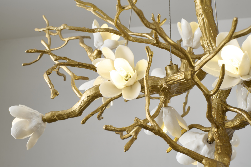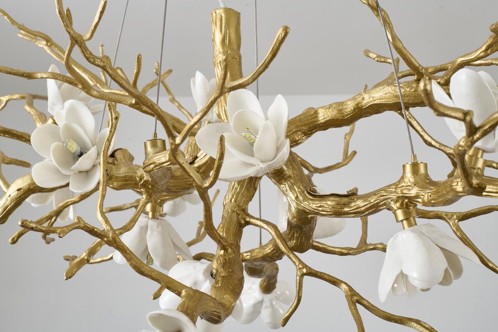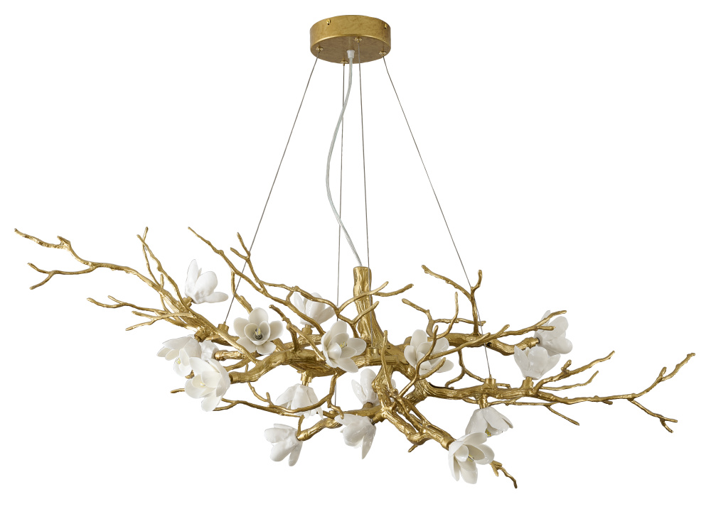 16-Light Brass Metal Chandelier With White Ceramic Shades