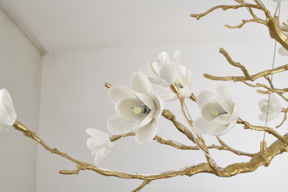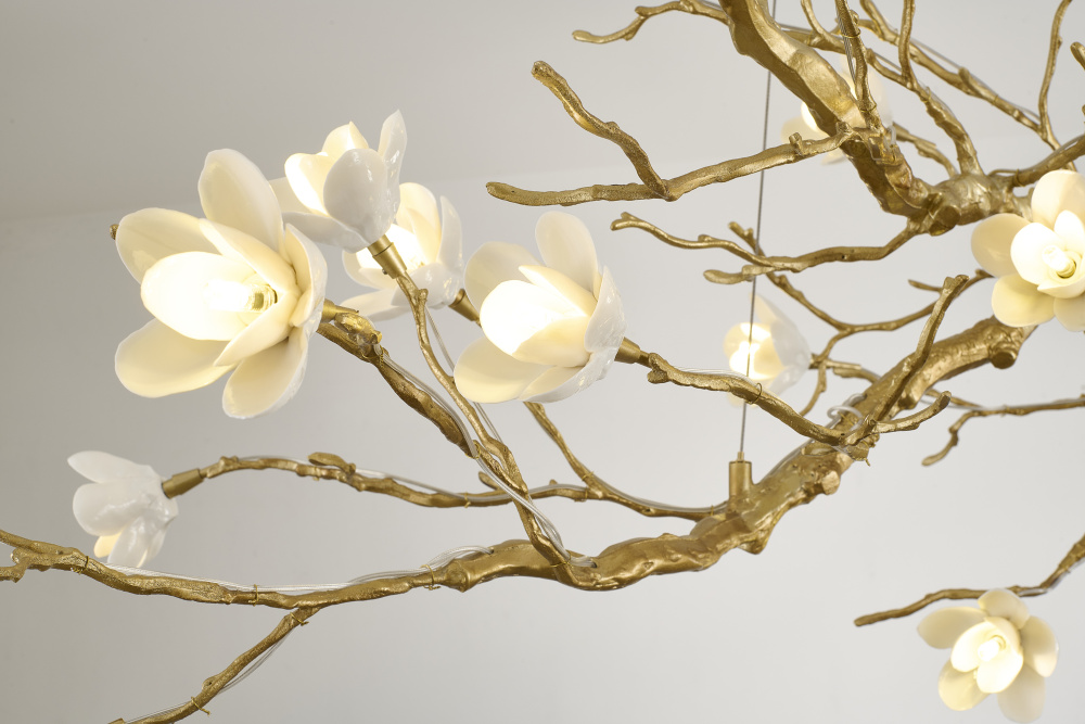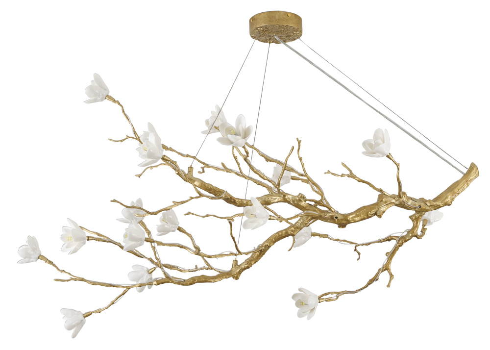 18-Light Brass Copper Chandelier With White Ceramic Shades