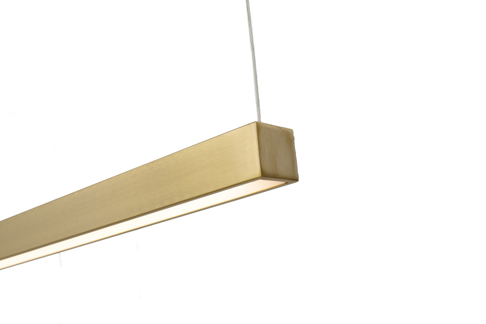 This LED chandelier is a brass metal linear stick LED chandelier. It comes with white acrylic diffuser. The LED color temperature for this LED chandelier is 3000K/4000K/5000K.
