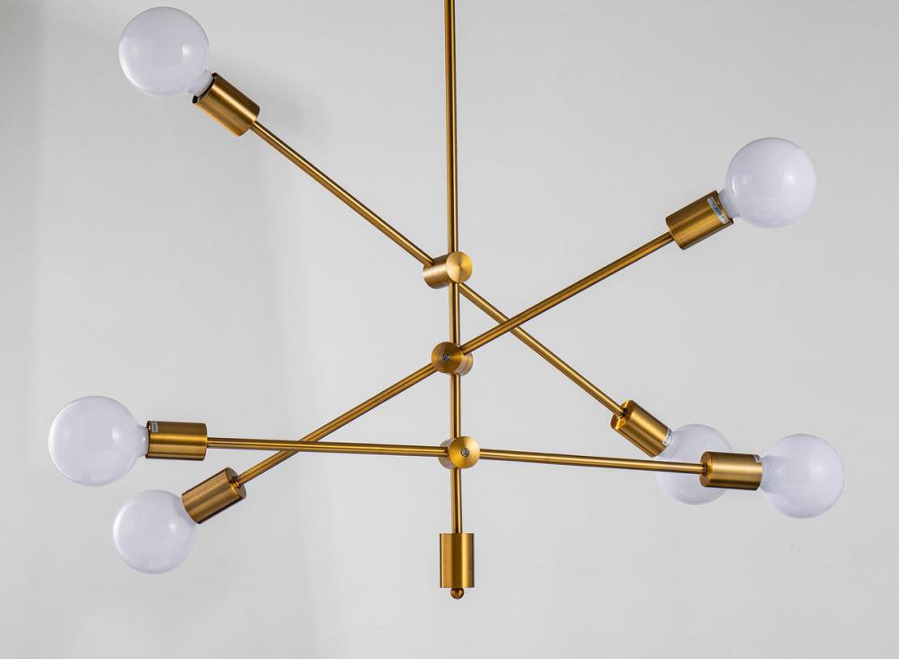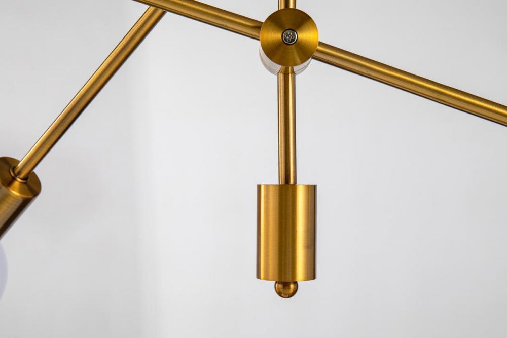 This exquisite chandelier is in an antique gold finish. The frame is made out of metal, and it comes with arms. The adjustable rod link makes this fixture suitable for most ceiling heights.