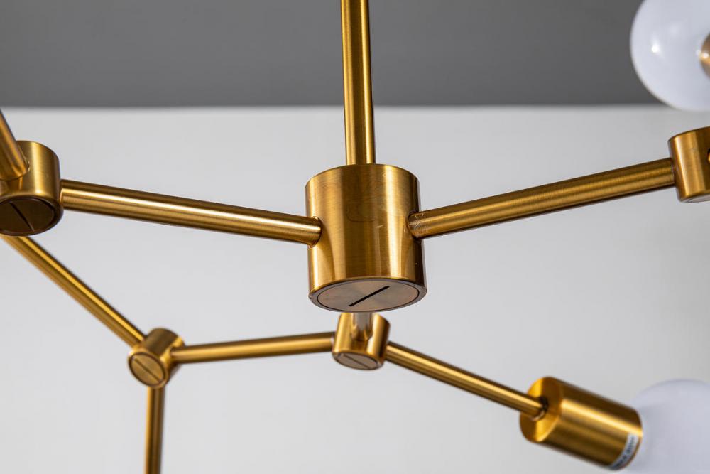 This exquisite chandelier is in an antique gold finish. The frame is made out of metal, and it comes with branch arms. The adjustable rod link makes this fixture suitable for most ceiling heights.