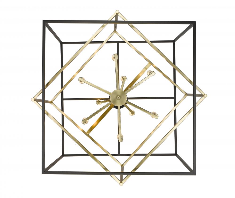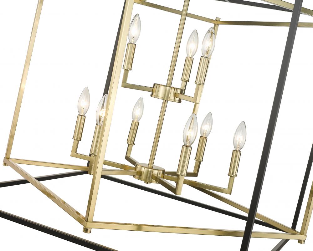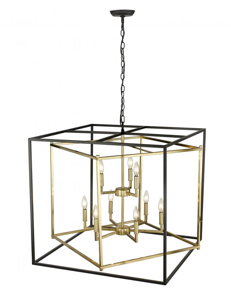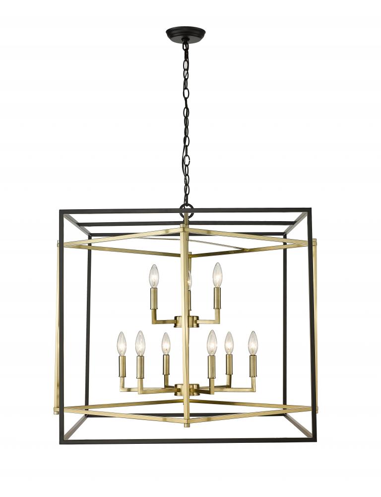 This chandelier has a black and gold iron frame. It comes with 72 inch long chain. The adjustable chain link makes this fixture suitable for most ceiling heights.