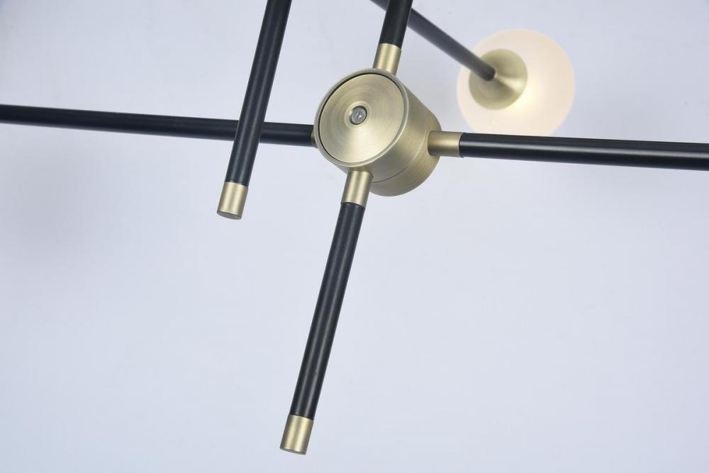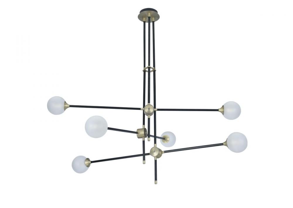 This exquisite ceiling fixture is in a black finish. The frame is made out of metal, and it comes with hardware accents in gold color and frosted glass globe shades in white color. You can create a timeless feel while using modern forms