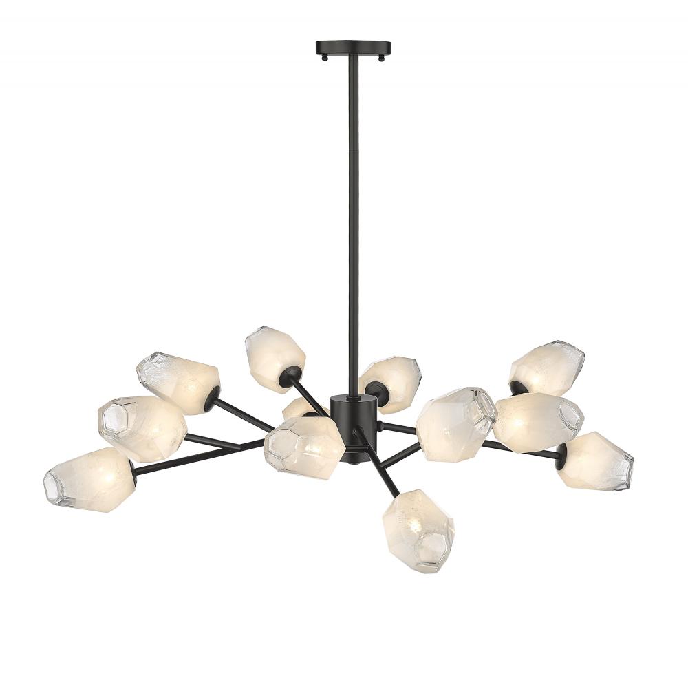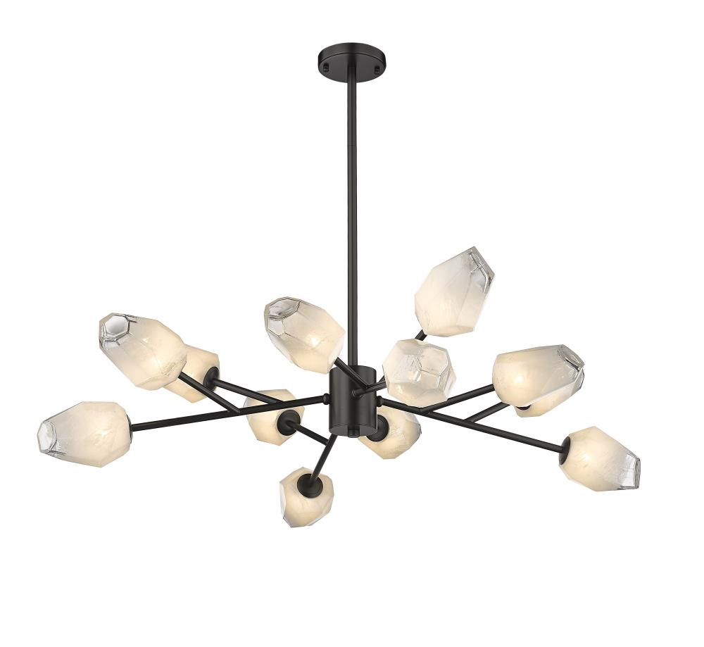 This chandelier is a black branch chandelier. It comes with a white glass shades. The rod length of 16" + 16" + 6" is provided and the rod length is adjustable.