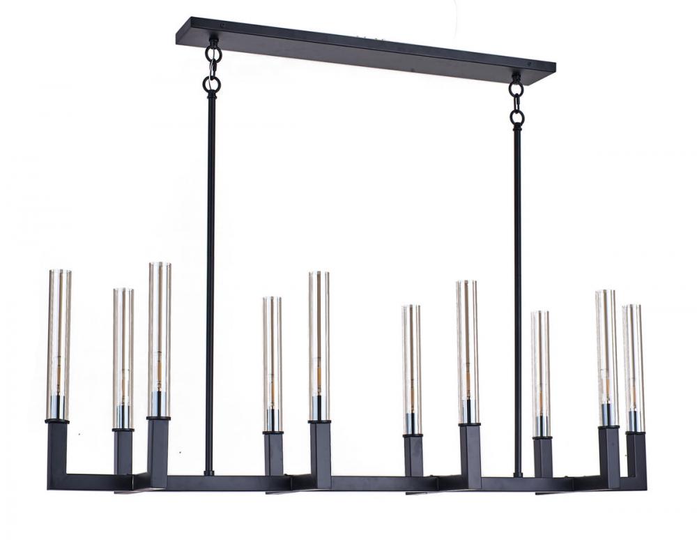 This exquisite ceiling fixture is in a black finish. The frame is made out of metal in a rectangular shape. It comes with glass tube shades in clear color.