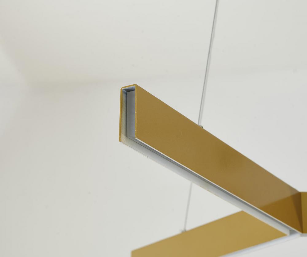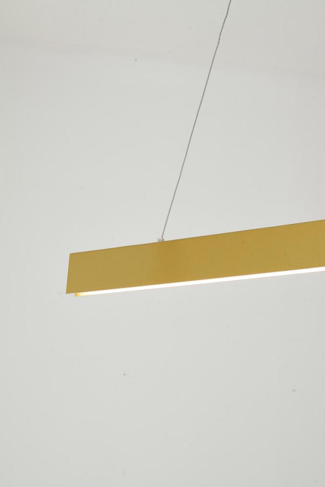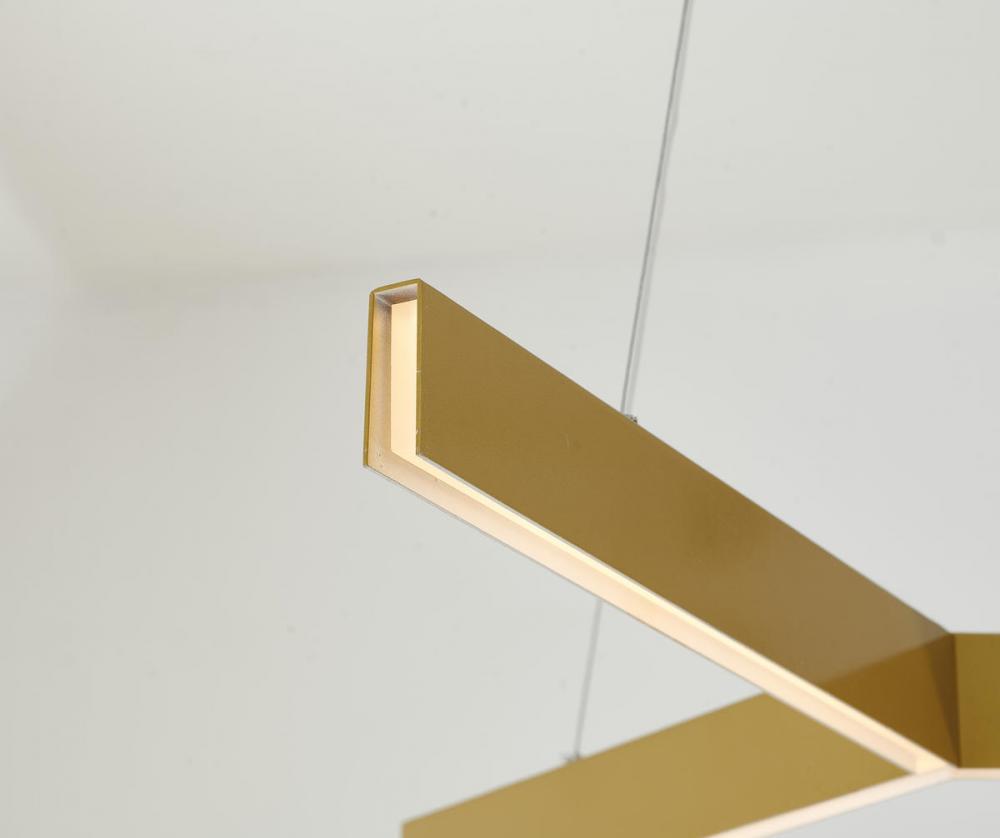 This LED chandelier is in a brass finish. The frame is made out of metal in a "Y" shaped, and it comes with acrylic diffusers. The length of hanging cord can be adjustable, and this light has an LED color temperature of 3000K