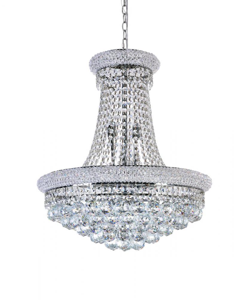 This exquisite chandelier is in a chrome finish. The frame is made out of iron with the crystal accents in a clear color. It can be used in any room and provide better illumination.