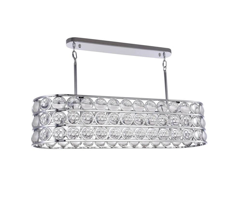 This chandelier is in a chrome finish. It has a rectangular frame with glass balls in clear color. It can provide better illumination, and can be used in any room.