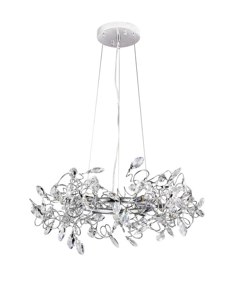 This exquisite chandelier is in a chrome finish. The frame is made out of metal with a branch design. This modern chandelier will lend a romantic contemporary feel to a variety of home decors