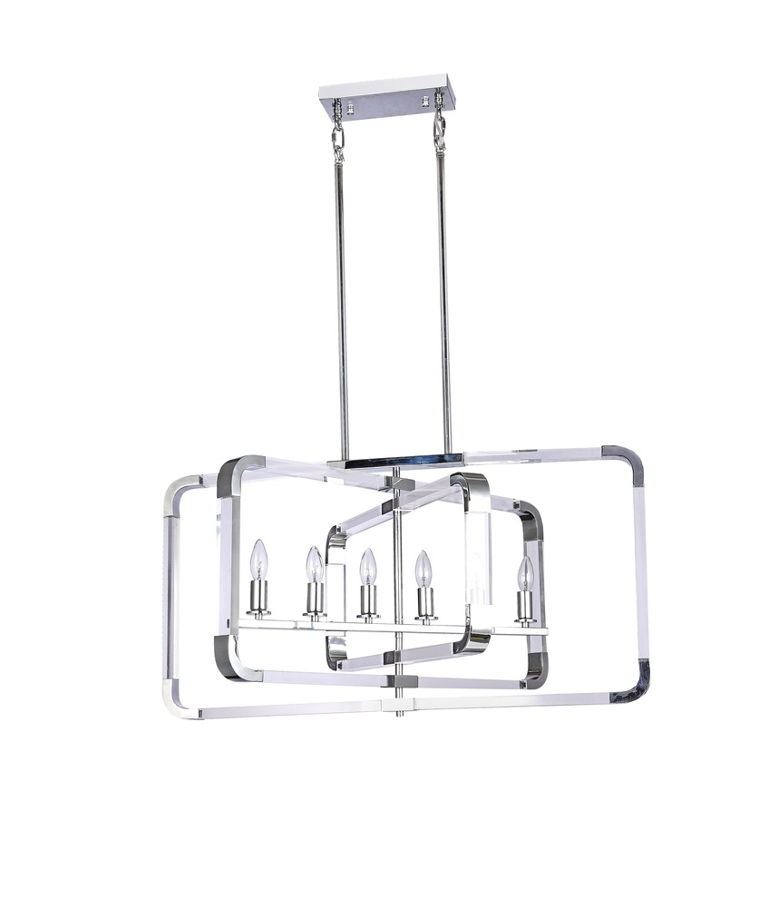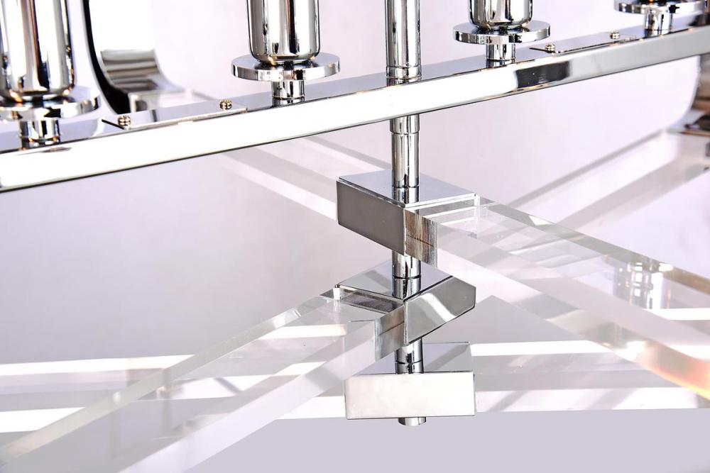 This unique ceiling fixture is in a chrome finish. The frame is made out metal in a rectangular shaped with clear acrylic arms, and the arms can move to different direction. You can create a timeless feel while using modern forms.