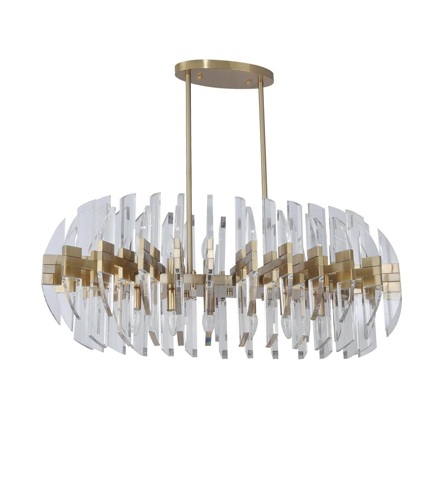 This unique ceiling fixture is in a copper finish. The frame is made out of metal in an ORB shape, and the arms are made out of acrylic in clear color. This modern fixture can be used in any rooms, entryway, and more.