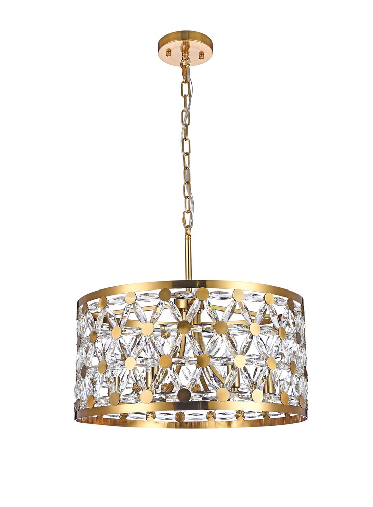 This chandelier is a copper drum shade chandelier. It comes with clear star crystal. The chain length of 1.5 meters is provided and the chain length is adjustable.