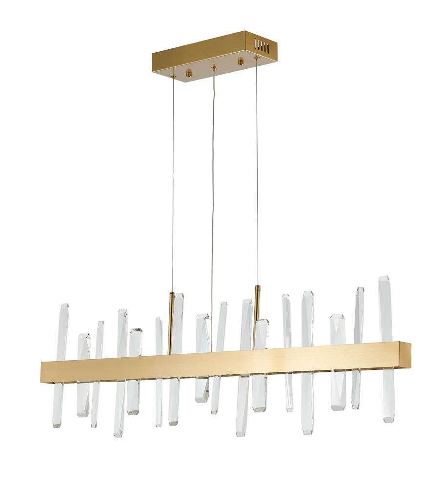 This chandelier is in a gold finish