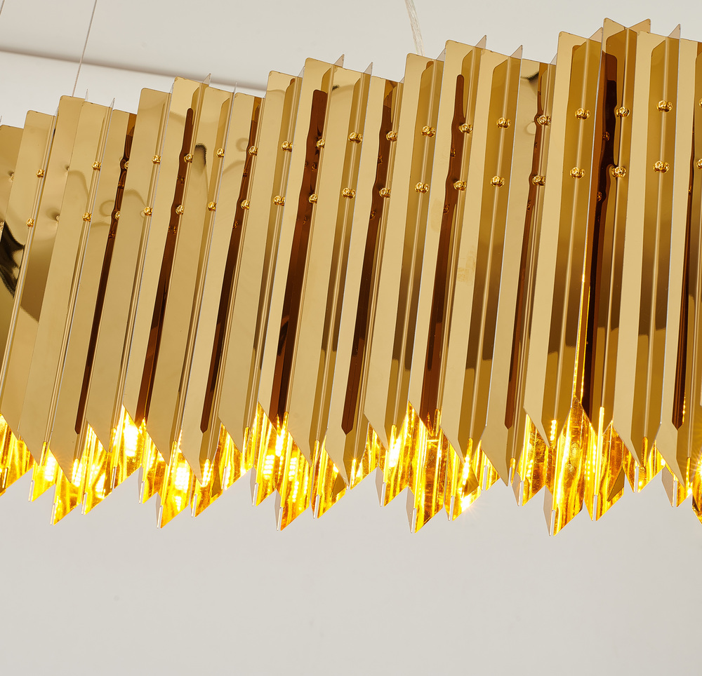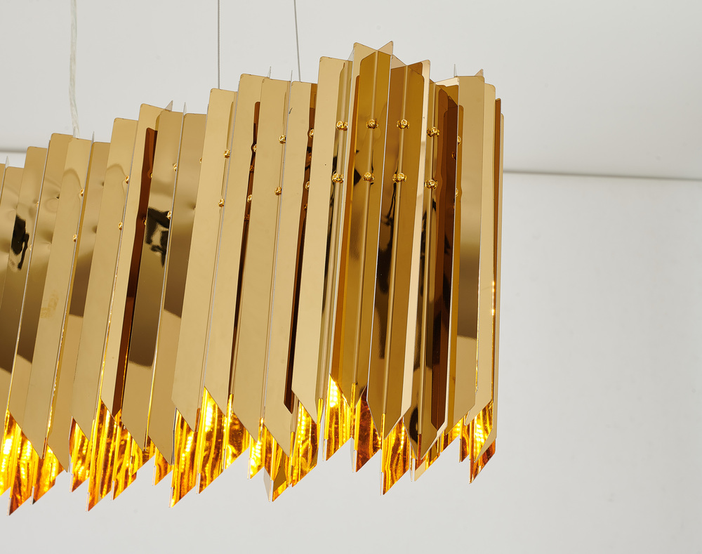 This exquisite ceiling fixture in a gold finish. The frame is made out of stainless steel in an oval shape. Six G9 bulbs (sold separately) can provide better illumination, and adjustable cord links make this fixture suitable for most ceiling heights.