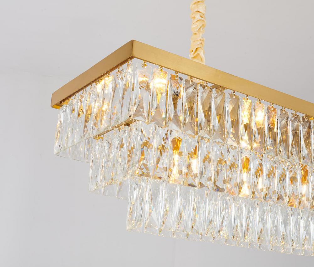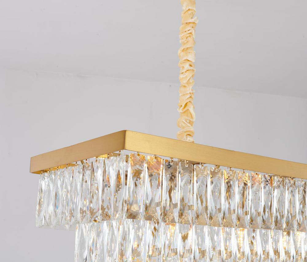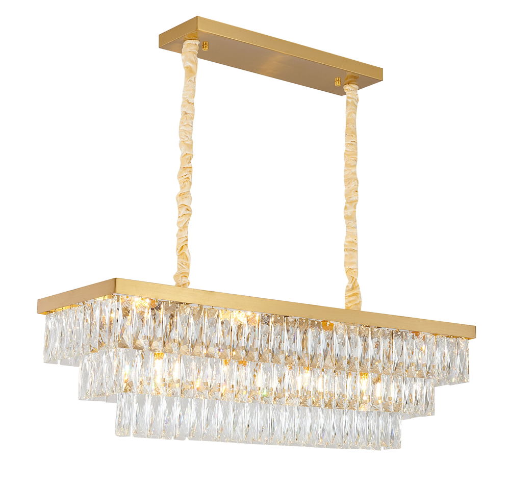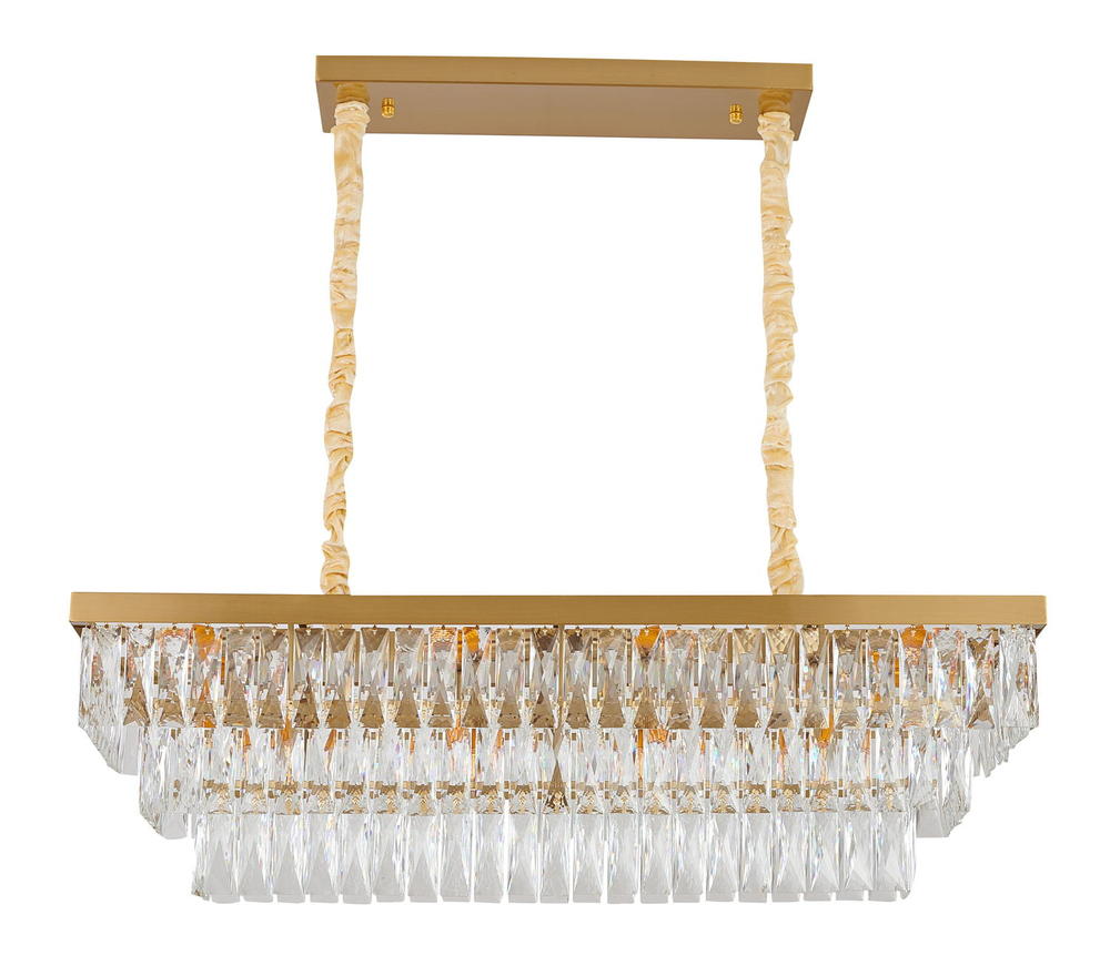 This exquisite chandelier is in a gold finish. The frame is made out of metal, and it comes with clear hanging crystals. You can create a timeless feel while using modern forms.