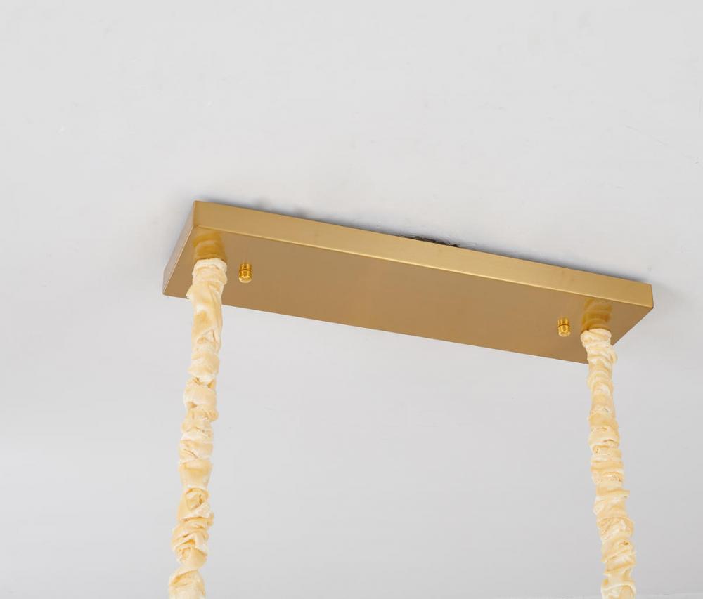 This fixture is hung by a 59" chain that can be adjusted to your liking.