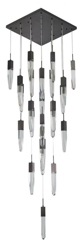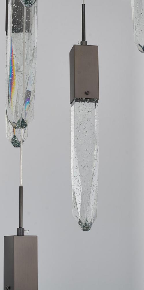 This exquisite chandelier is in a matte black finish. The frame is made out of metal, and it comes with hanging clear iceberg bubble crystals. The length of cords can be adjustable and make this fixture suitable for most ceiling heights