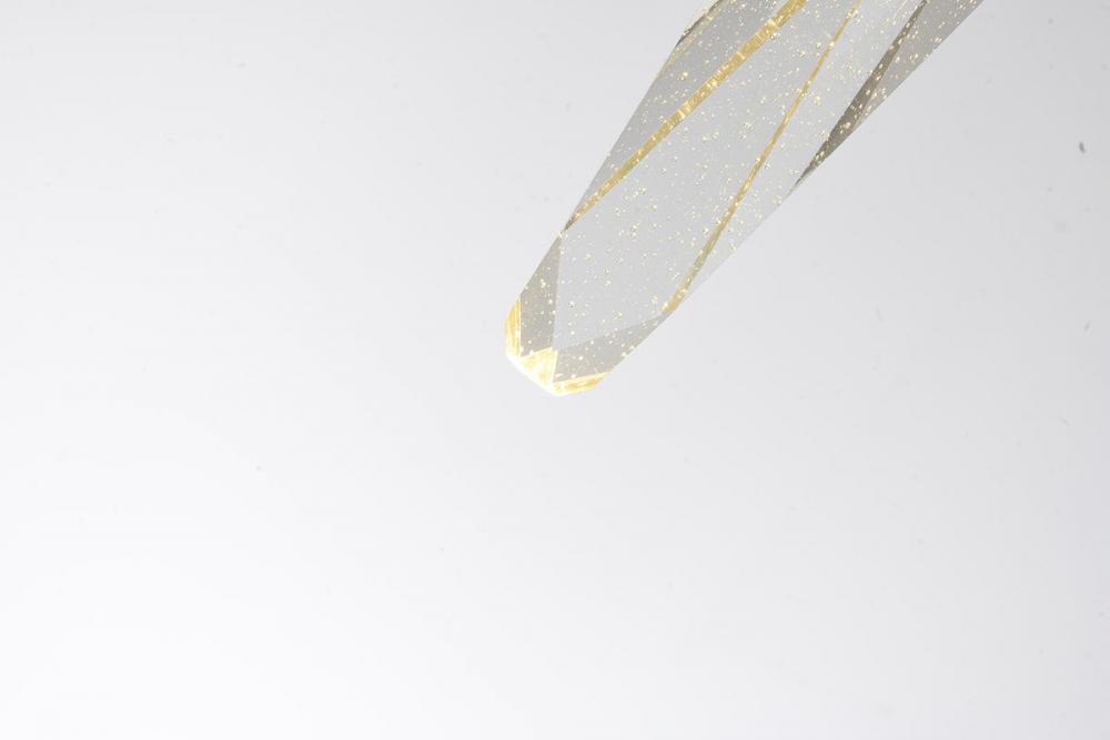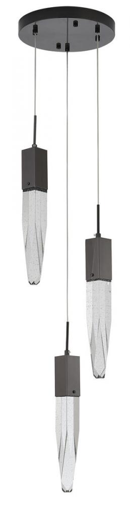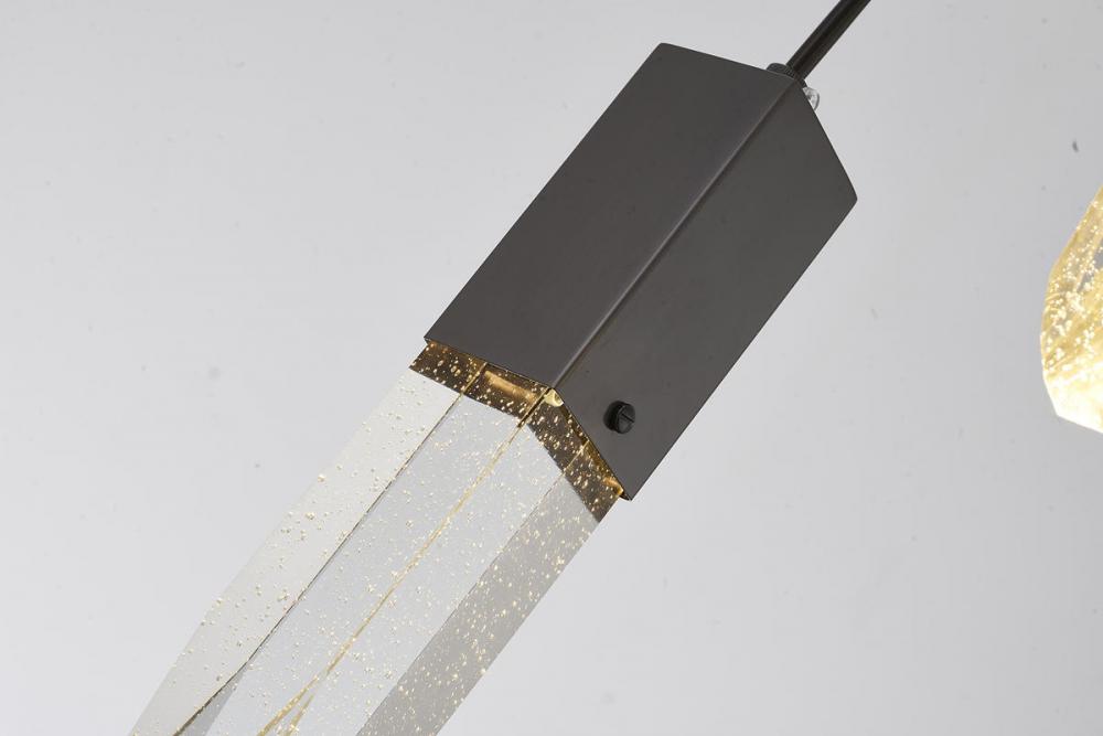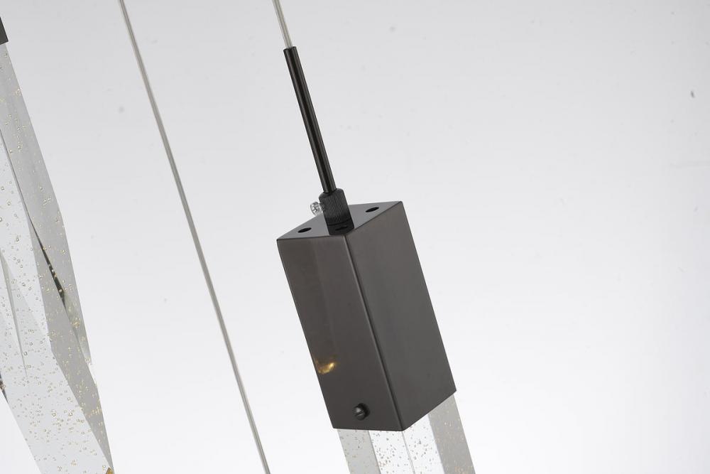 This exquisite chandelier is in a black finish. The frame is made out of metal, and it comes with hanging bubble iceberg crystals. The adjustable cord links make this fixture suitable for most ceiling heights.