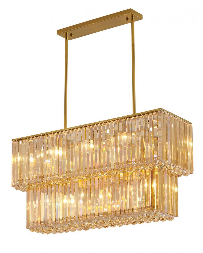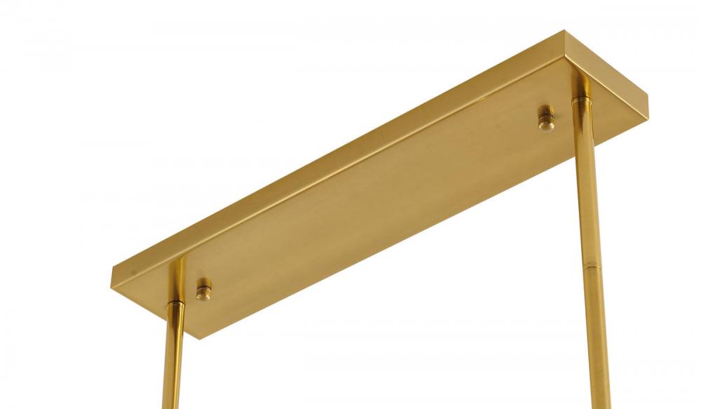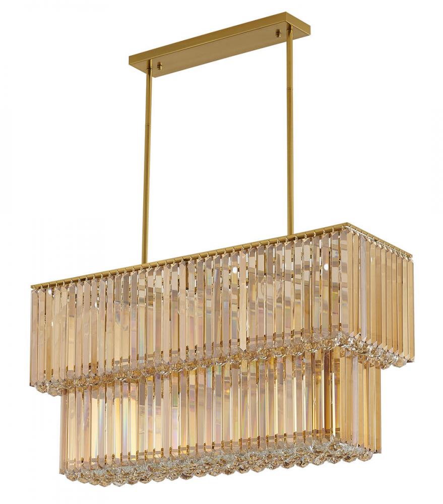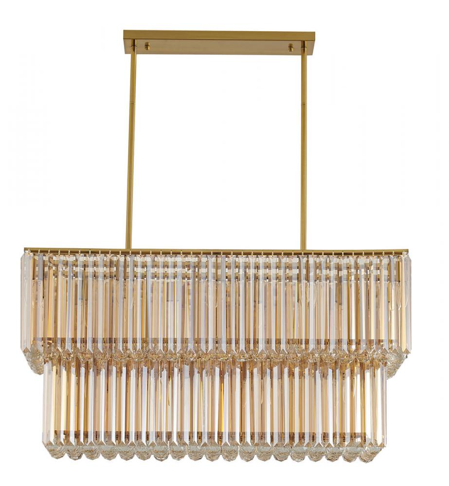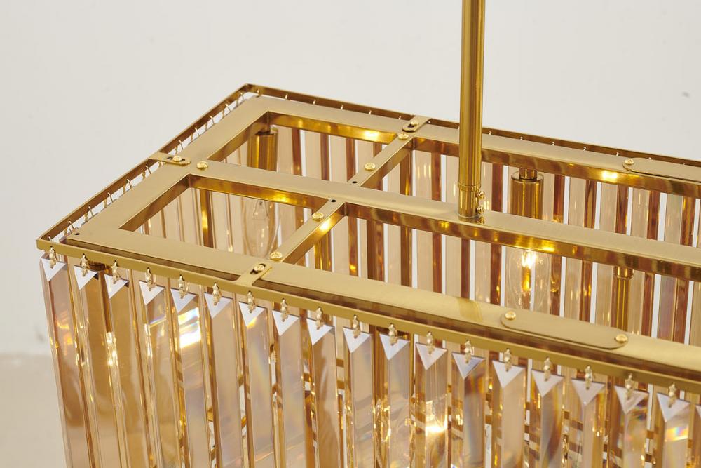 This exquisite chandelier is in a stain brass finish. The frame is made out of metal, and it comes with clear crystal hanging balls. The adjustable rod links make this fixture suitable for most ceiling heights