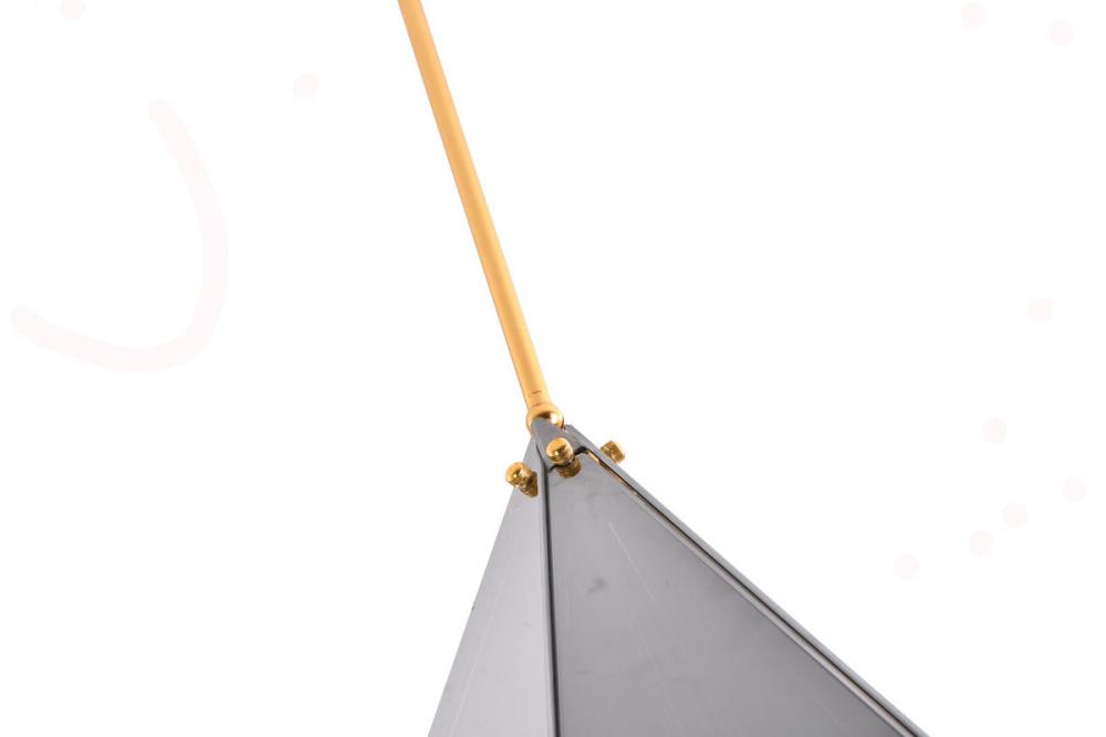 This unique chandelier is in a gold finish. The frame is made out of metal, and it has a smoke glass shade. The adjustable rod link makes this fixture suitable for most ceiling heights.