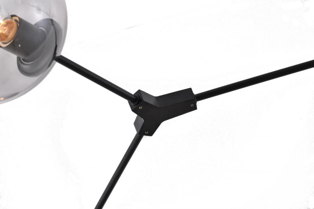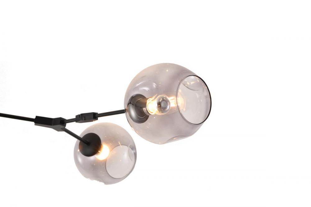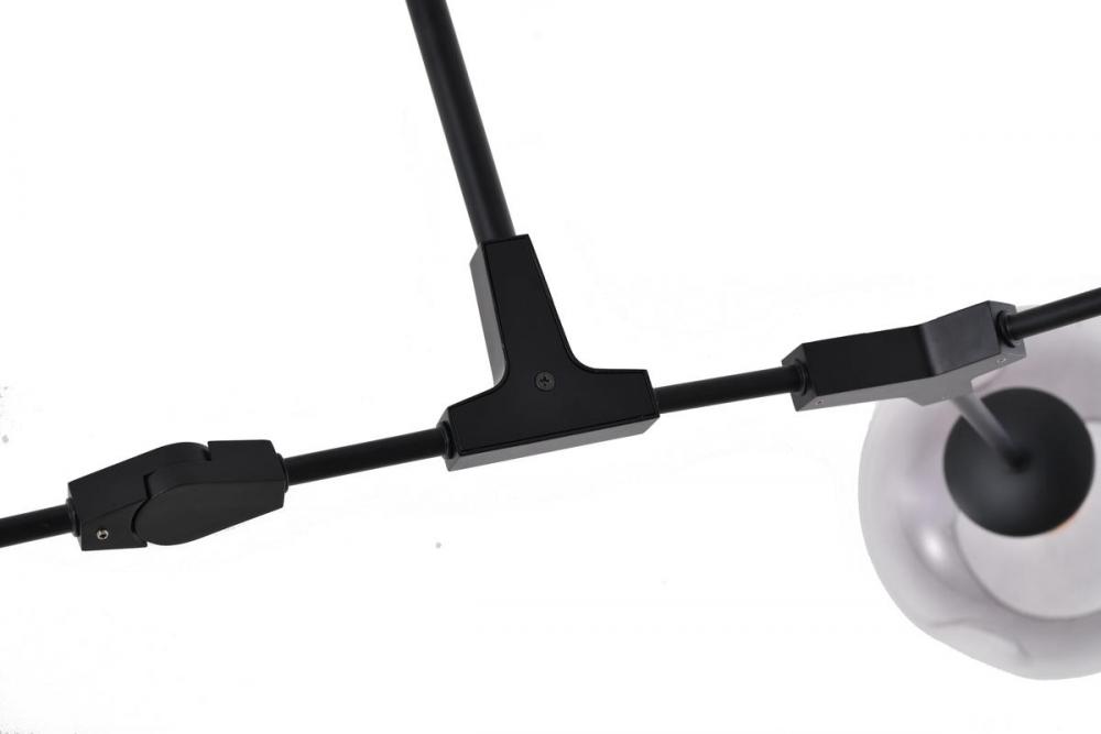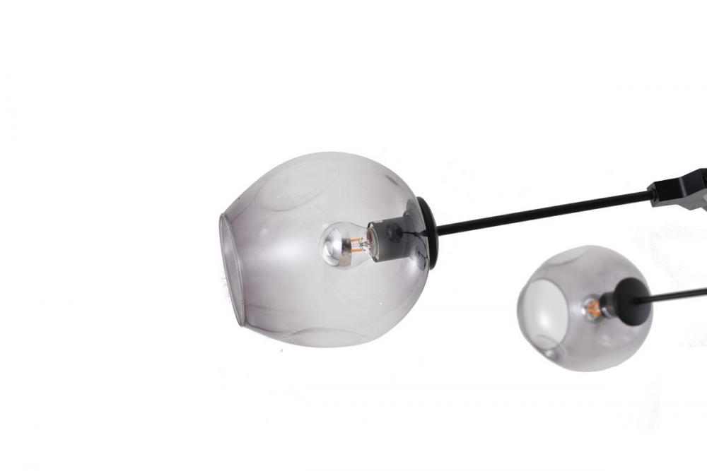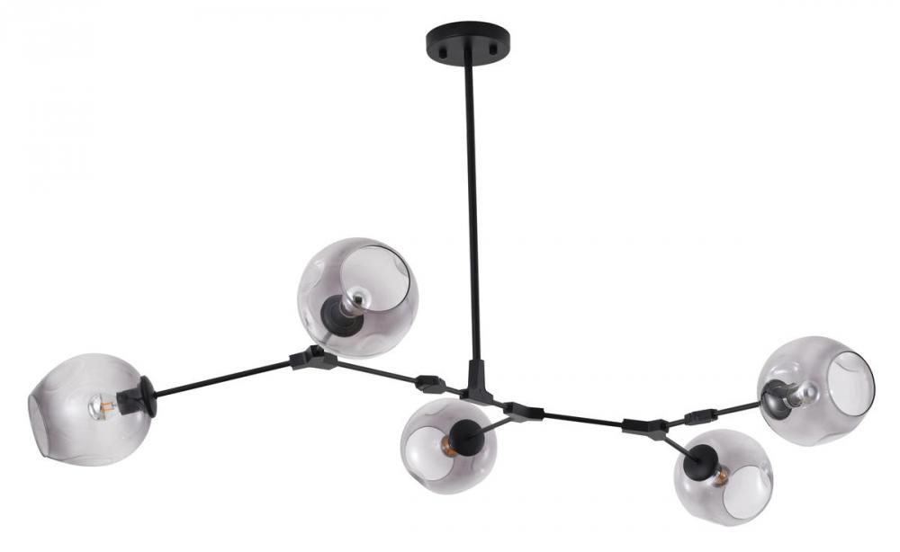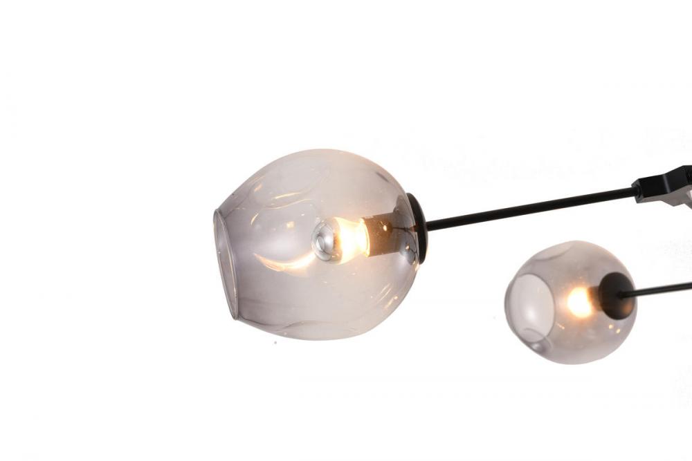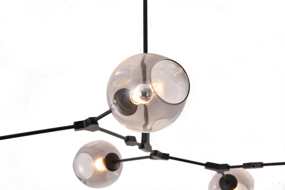 This exquisite chandelier is in a black finish. The frame is made out of metal, and it comes with smoke glass shades. The adjustable rod link makes this fixture suitable for most ceiling heights.