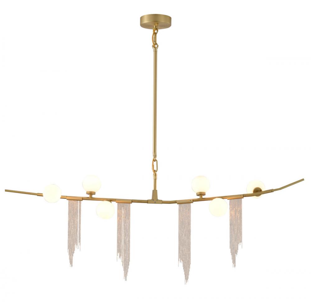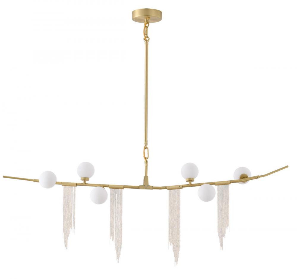 This exquisite chandelier is in a gold finish. The frame is made out of metal, and it comes aluminum chain and white glass shades. The adjustable rod link makes this fixture suitable for most ceiling heights.