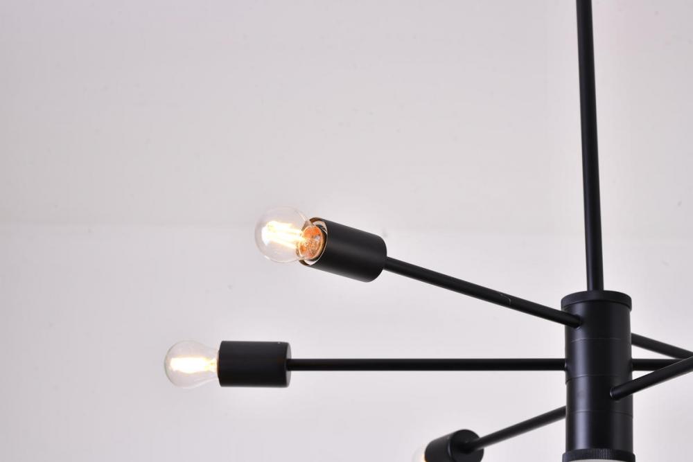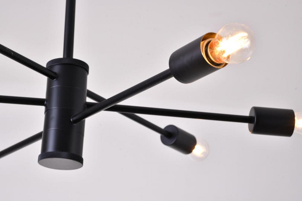 This exquisite chandelier is in a matte black finish. The frame is made out of metal, and the arms can be adjustable to different direction. The adjustable rod link makes this fixture suitable for most ceiling heights.
