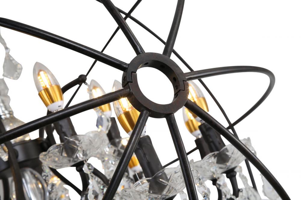 This modern chandelier is in a rustic bronze finish. The frame is made out of metal, and it comes with beaded crystal accents in clear color. The adjustable chain link makes this fixture suitable for most ceiling heights.