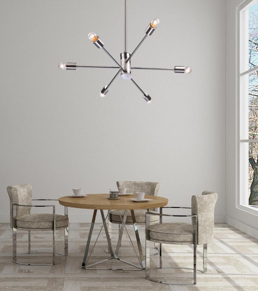 This ceiling fixture is in a shiny nickel finish. It comes with six arms and the arms can be moved different direction. This fixture can be use in any room, and can provide better illumination.