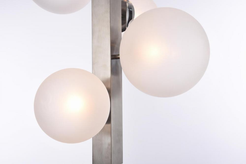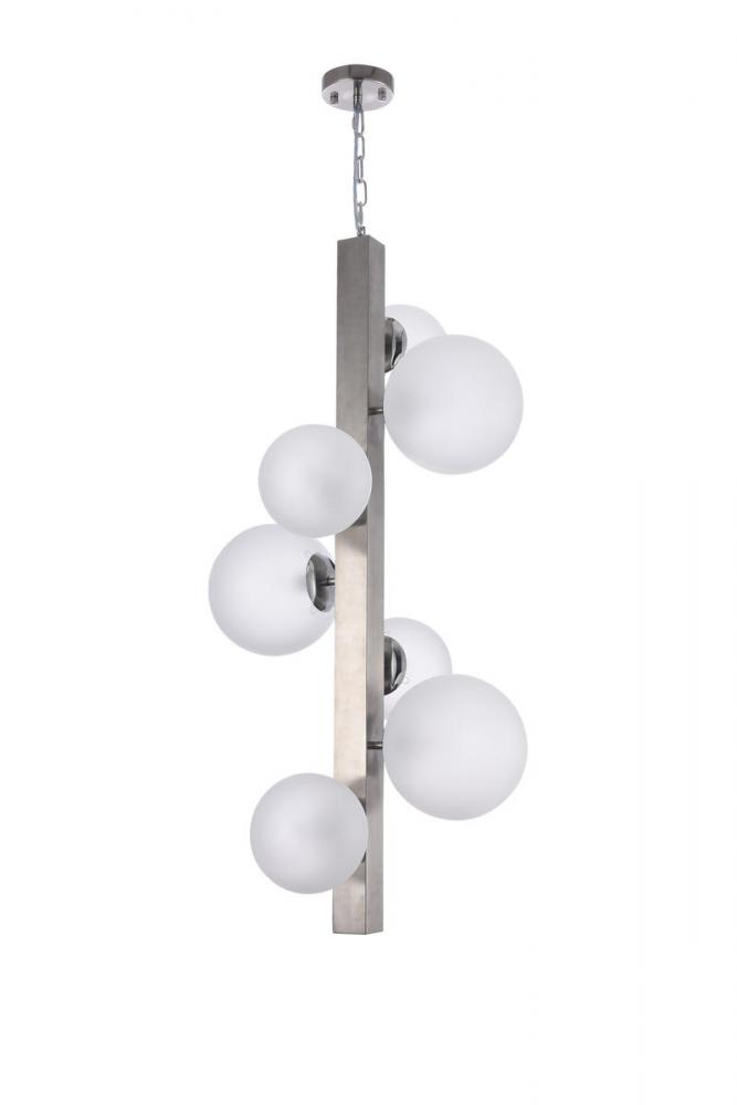 This exquisite ceiling fixture has a shiny nickel stainless steel frame. It comes with glass ball shades in white color. The chain link makes this fixture suitable for most ceiling heights. You can create a timeless steel while using modern forms.