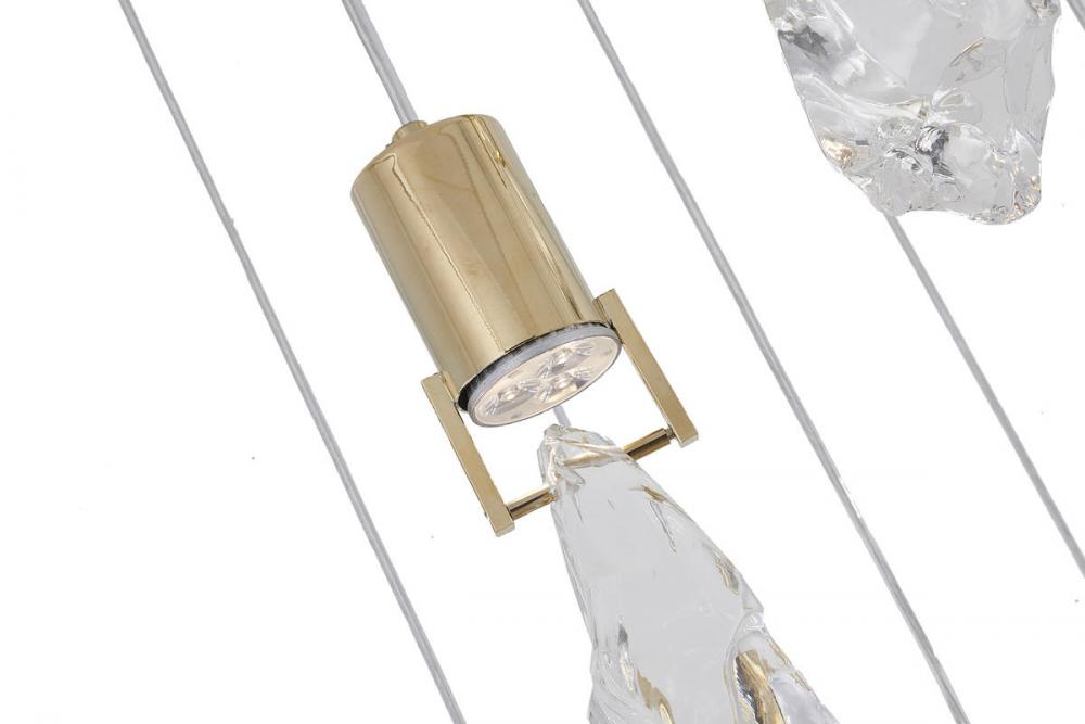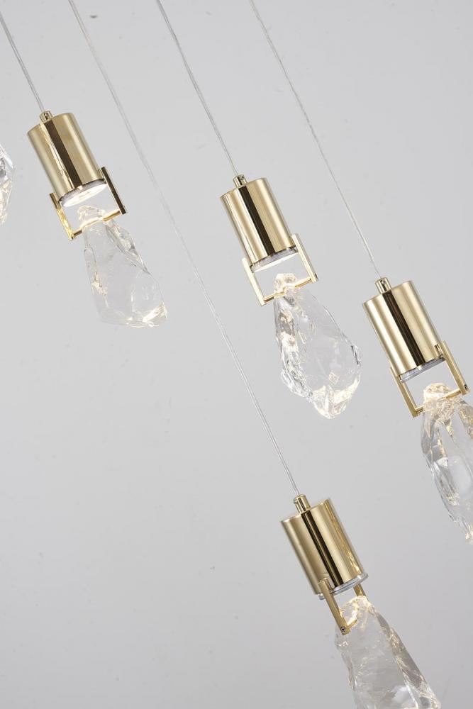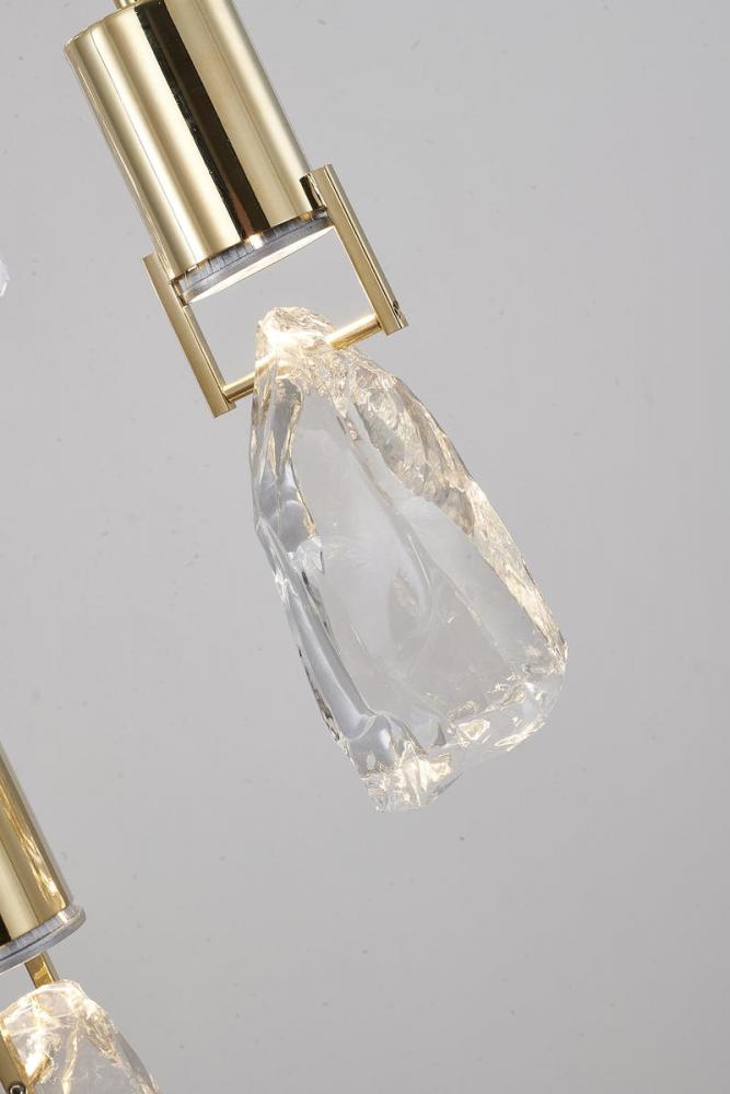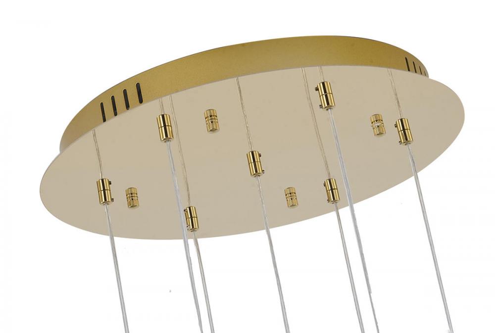 This chandelier has a brushed gold stainless steel frame