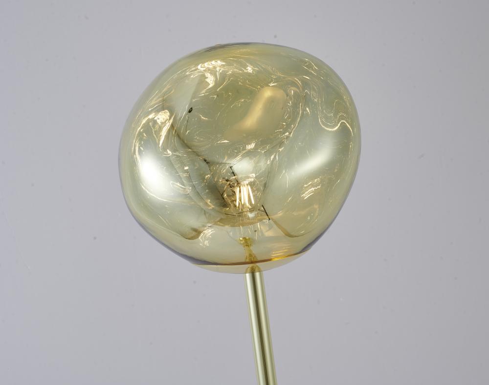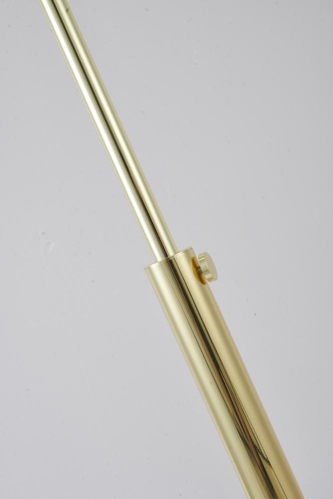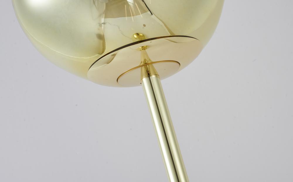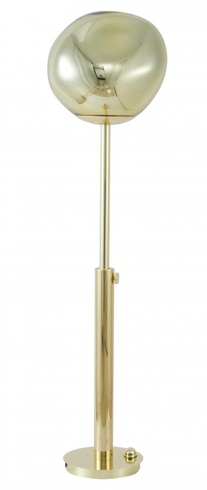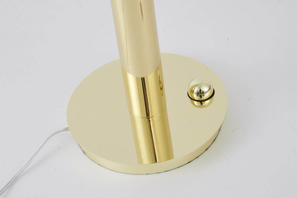 This floor lamp is a gold orb acrylic shade floor lamp. It comes with gold hardware. The materials for this floor lamp consists of acrylic and metal.