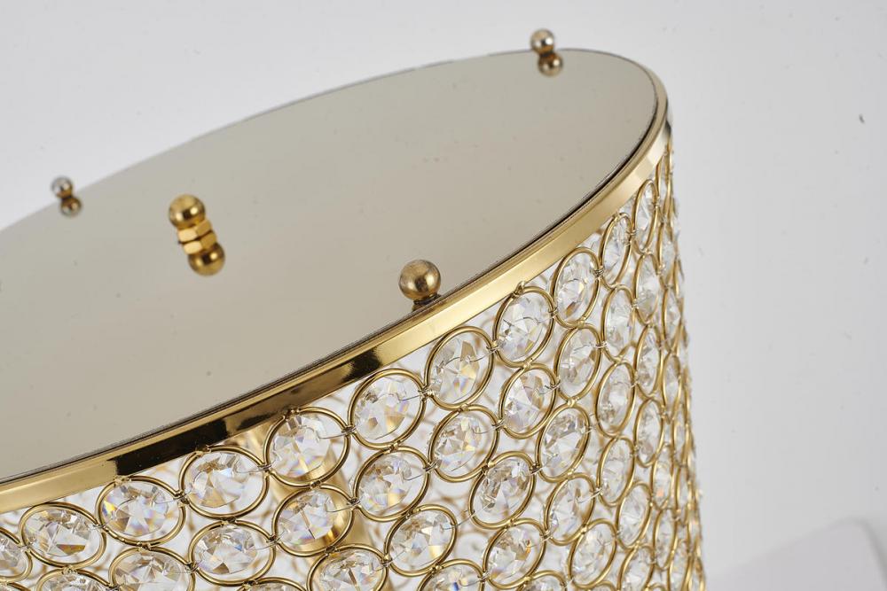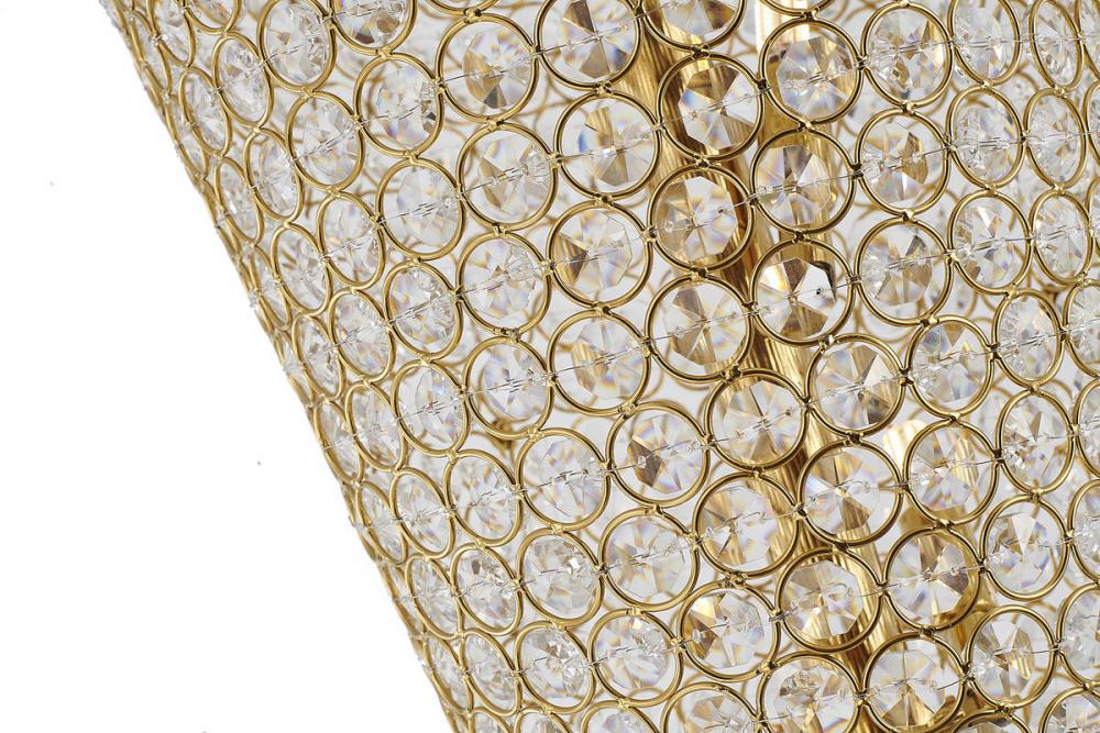 This floor lamp is in a gold finish. The frame is made out of metal, and it comes with clear crystal beaded. It also has a plug in with a dimmer switch. This floor lamp is great for chair side reading or general room illumination