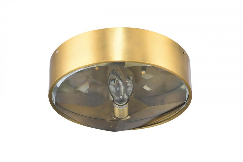 This exquisite flush mount is in a brass finish. The frame is made out of metal with a clear crystal distorted shade. This modern fixture can be used in any room.