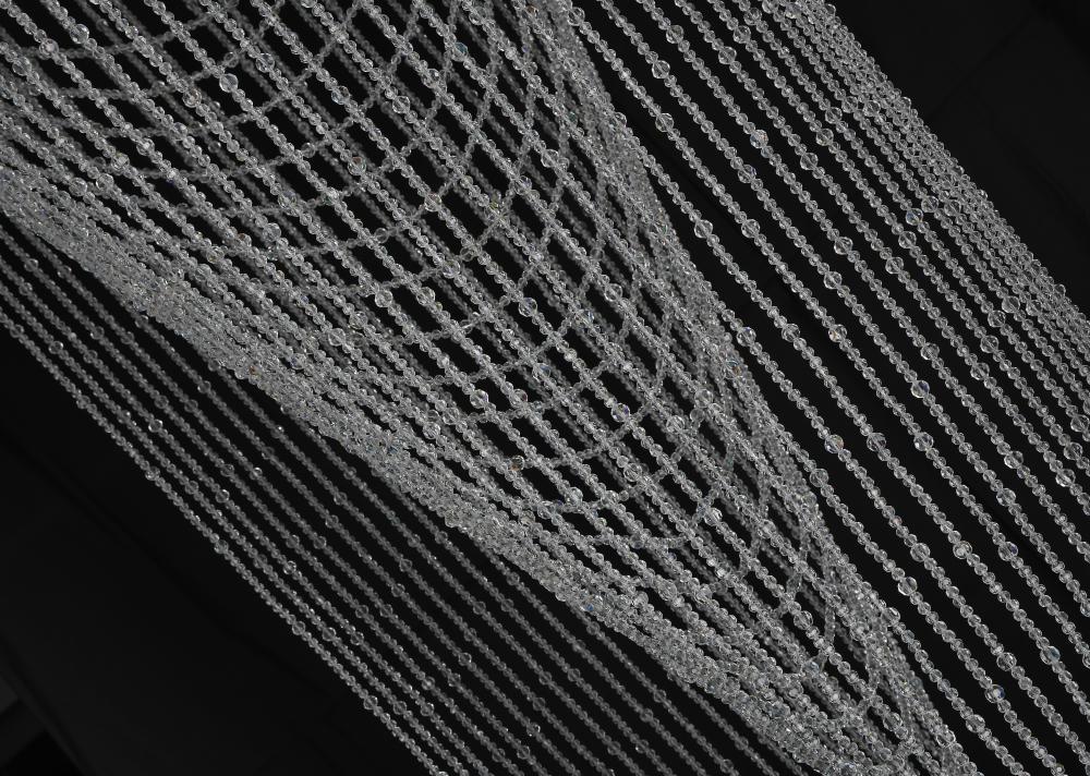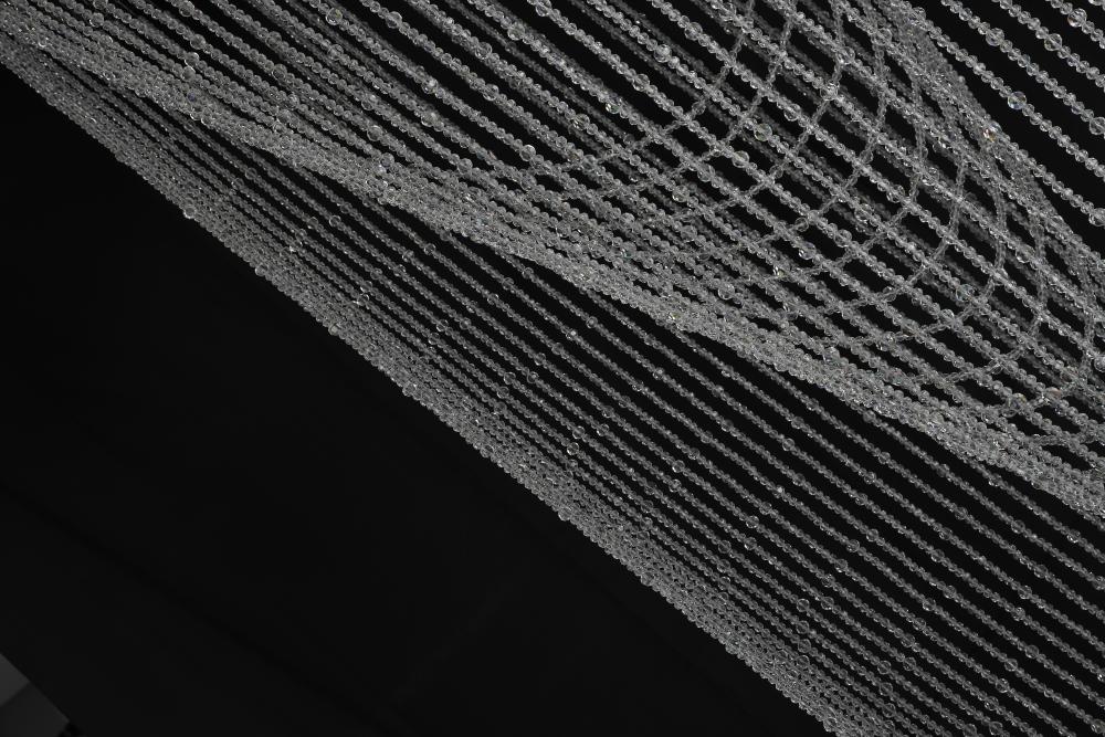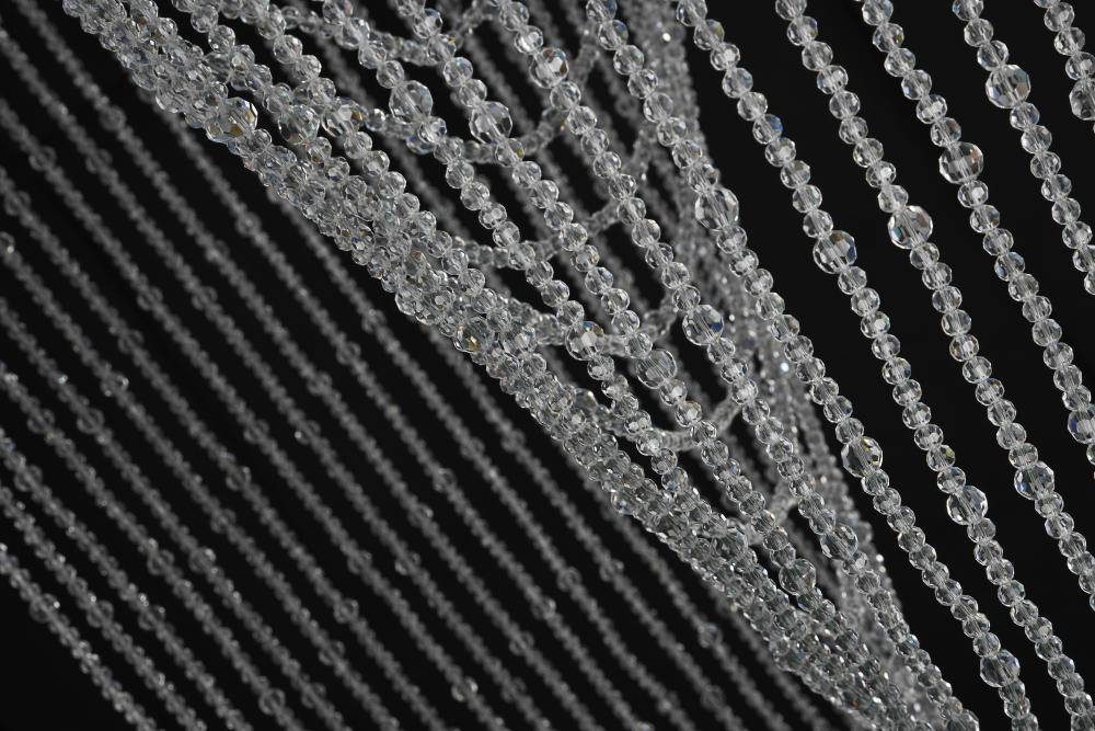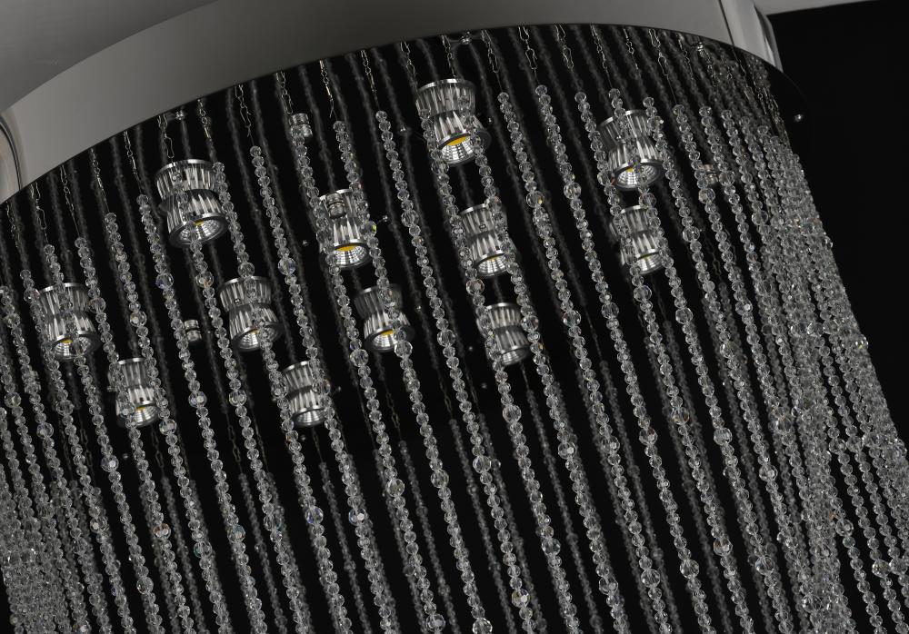 This flush mount is in a chrome finish. It comes with clear hanging crystal beads. The materials for this flush mount consists of stainless steel and crystal.