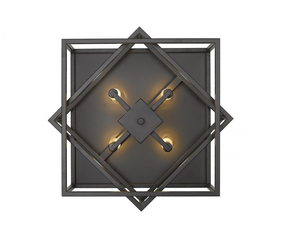 This flush mount is in a black finish. The frame is made out of iron, and it has a black iron interlocked box. It can be used in any rooms, entryways, and more.