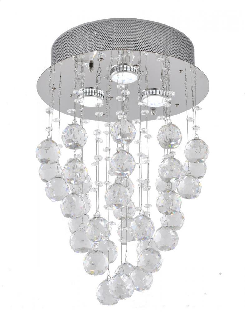 This exquisite flush mount is in a chrome finish. The frame is made out of metal, and It comes with clear crystal drop balls. It can be used in any rooms, entryways, and more. You can create a timeless feel while using modern forms