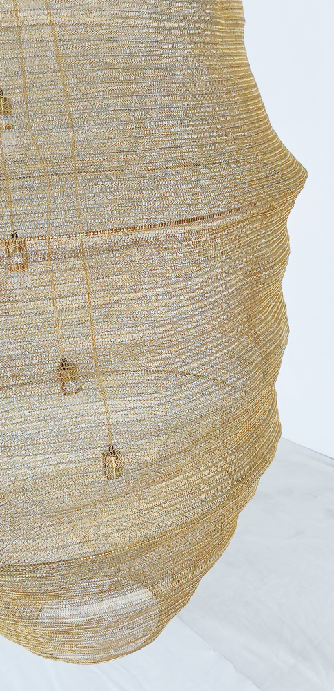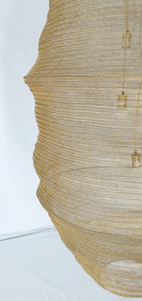 This chandelier is a gold powder coat chain basket chandelier. The material for this chandelier consist of iron. The chain length of 120 inches is provided and the chain length is adjustable.