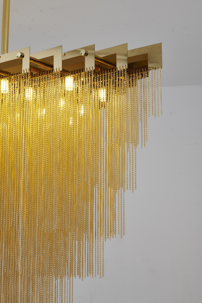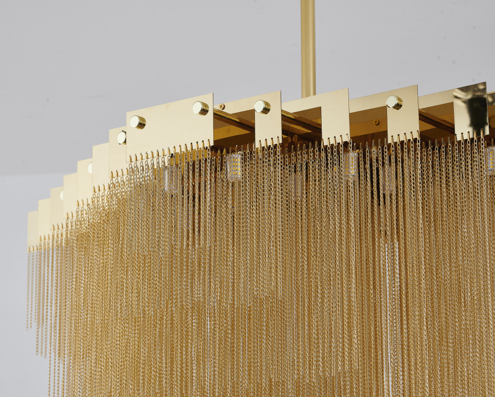 20-Light Gold Chandelier With Hanging Aluminum Chains