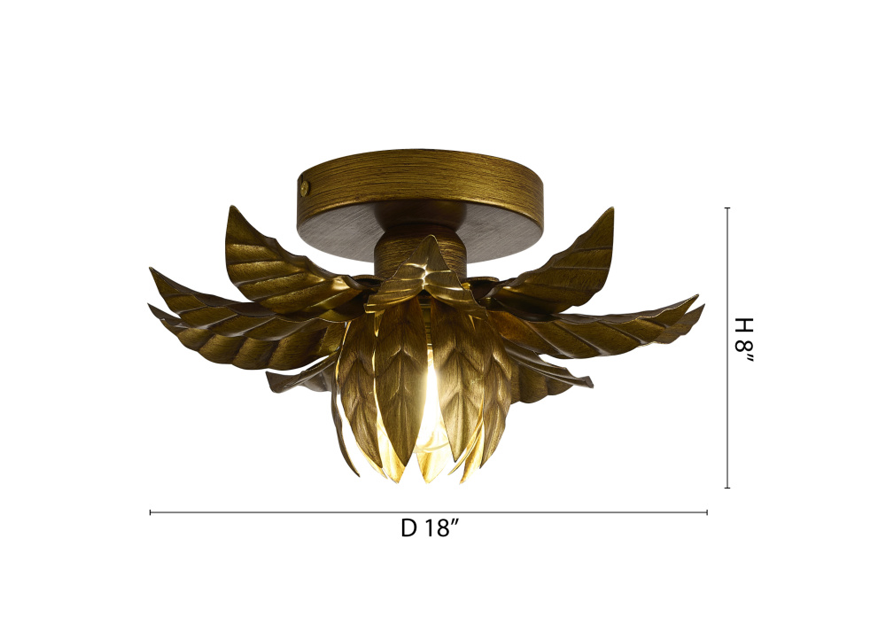 This transitional flush mount is a stunning light fixture that features delicate petals surrounding the bulb, giving it a unique and elegant appearance. Measuring 18 inches in diameter and 8 inches in height, this fixture is perfect for adding a touch of sophistication to a medium to large-sized room or space. The flush mount is designed to be mounted on a wall and is compatible with one E26 socket, accommodating 40-watt bulb (Bulbs Not Included). Its compact size and minimalist design make it an excellent choice for bedroom, living room, dinning room, kitchen, entryway, or hallway.