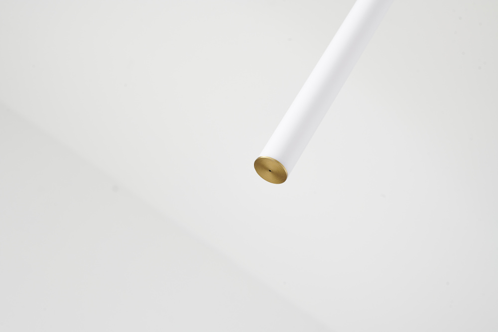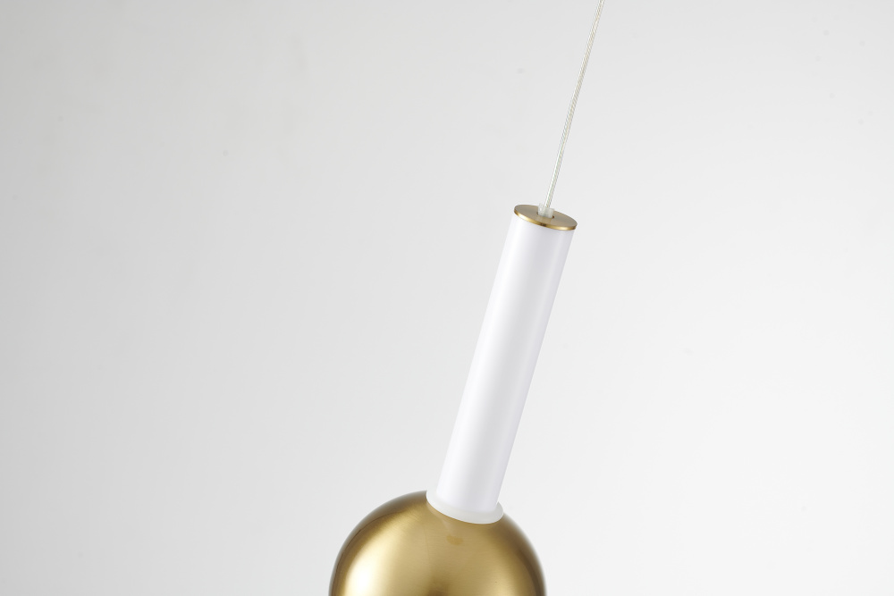This pendant is a gold single pendant light. It comes with a white acrylic shade. The cord length of 59 inches is provided and the cord length is adjustable. The LED color temperature for this chandelier is 3000K.