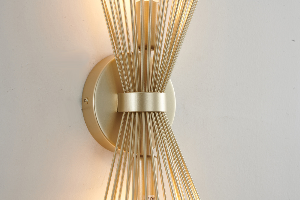 2-Light Gold Iron Spiked Cone Wall Sconce